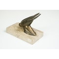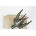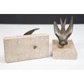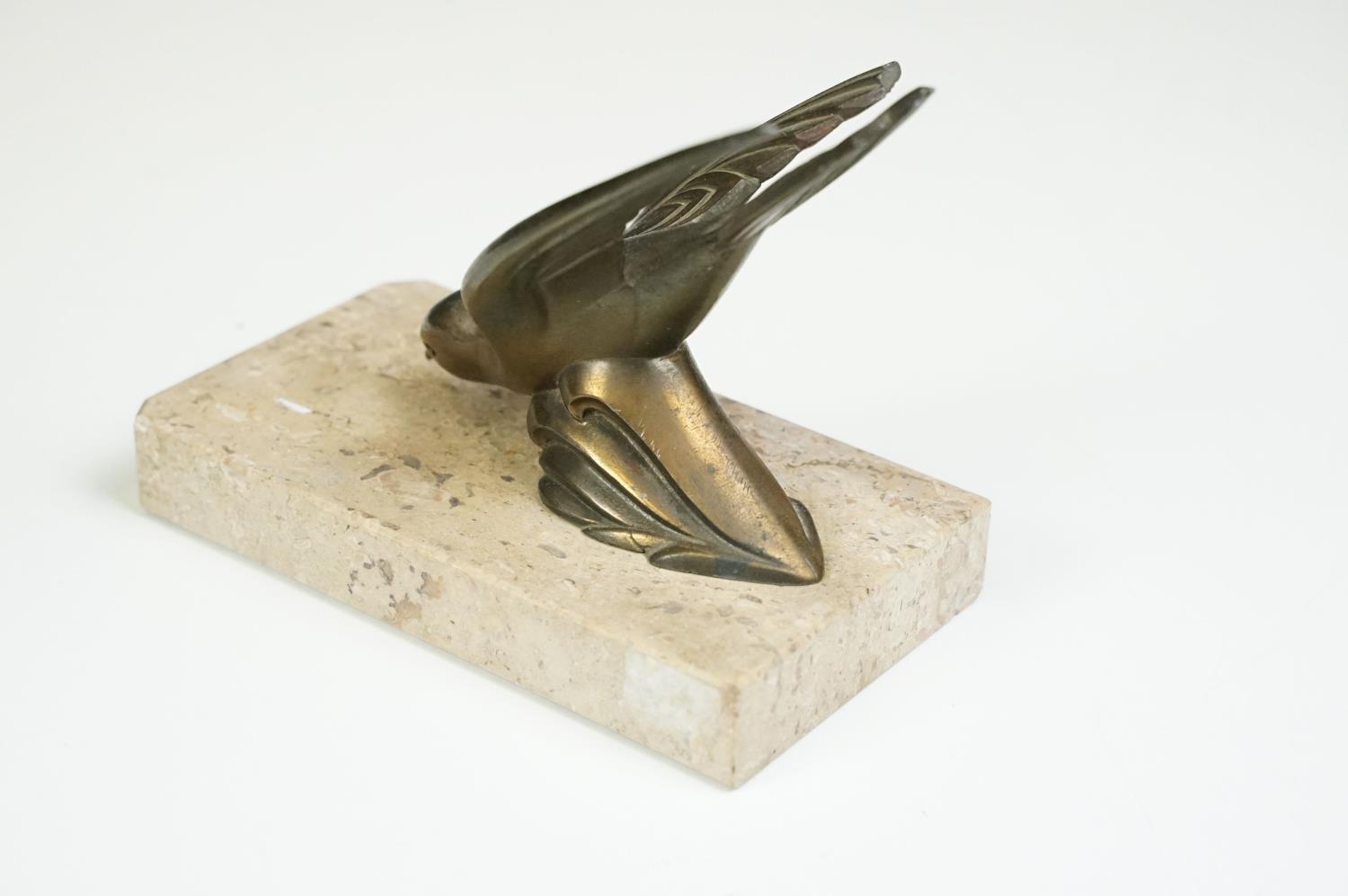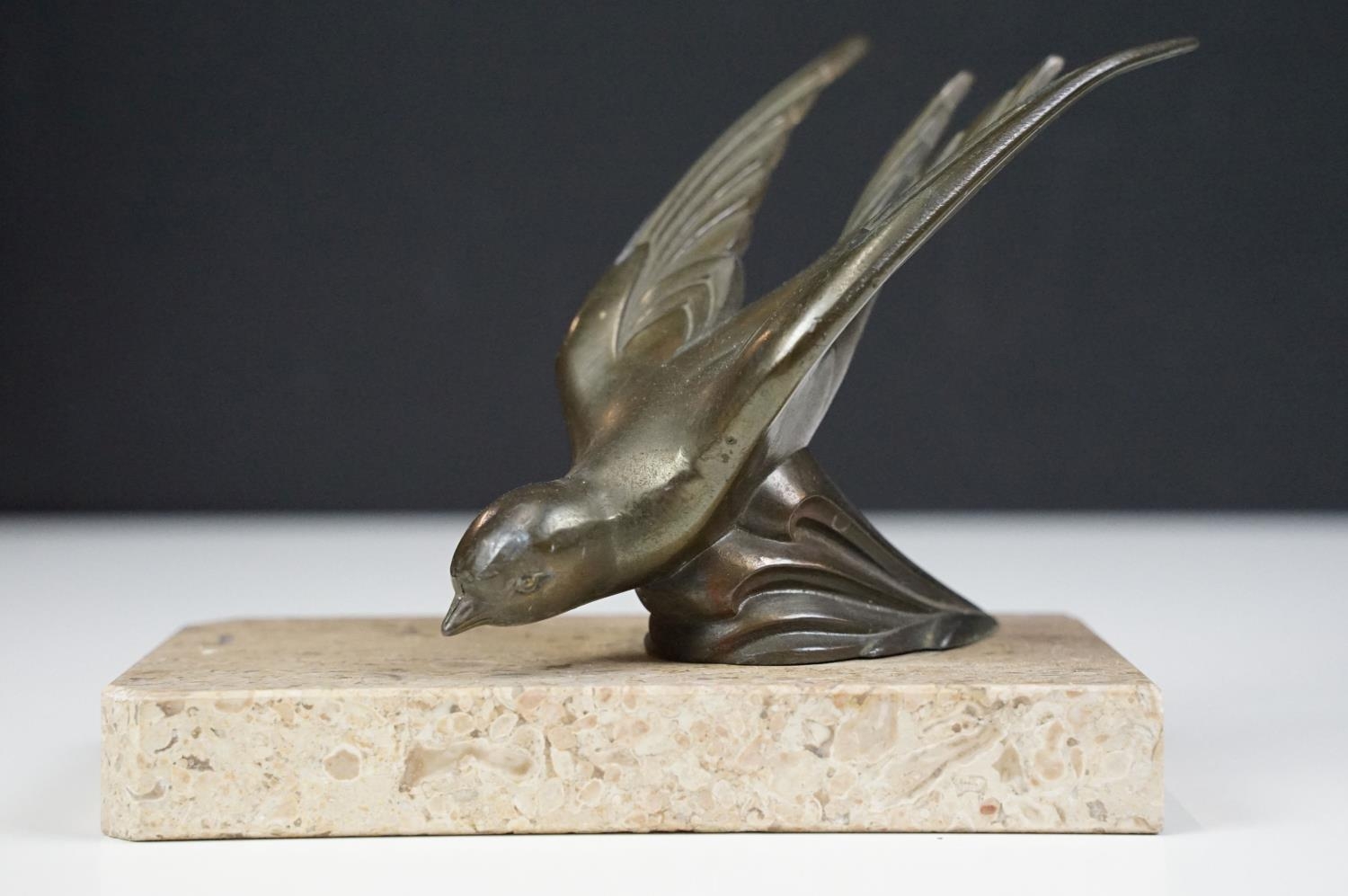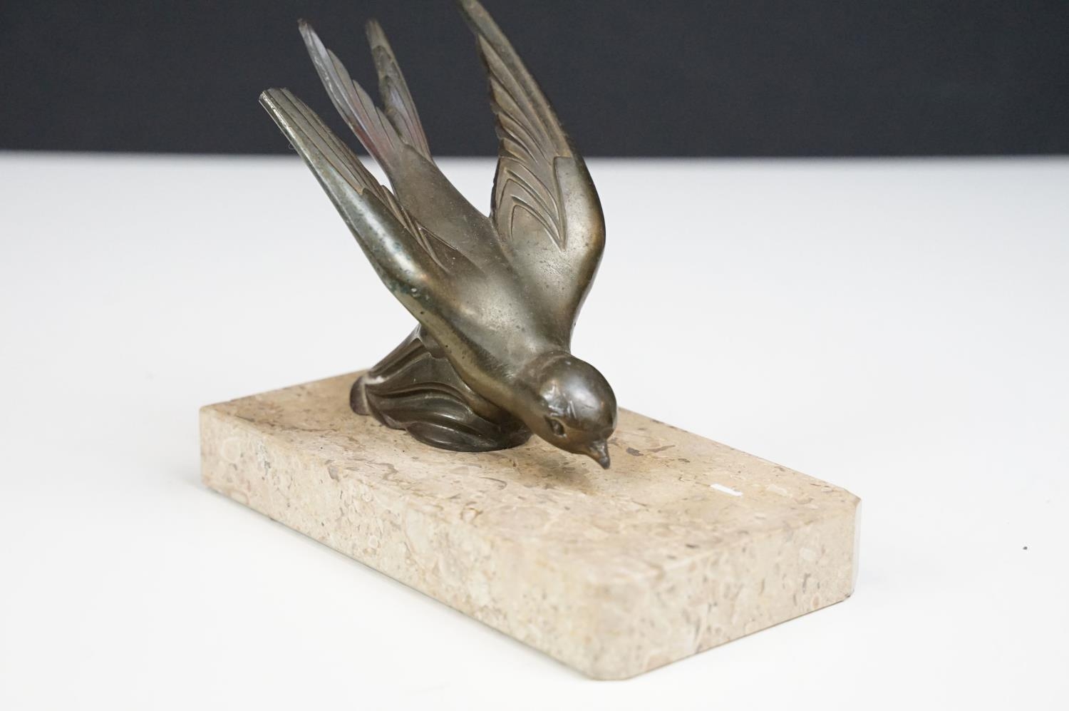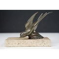 Pair of Art Deco marble bookends mounted with stylised spelter birds (one bird a/f), each 15cm long