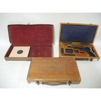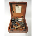 Early 20th Century grey painted metal and brass sextant by H. Hughes, housed in a mahogany case