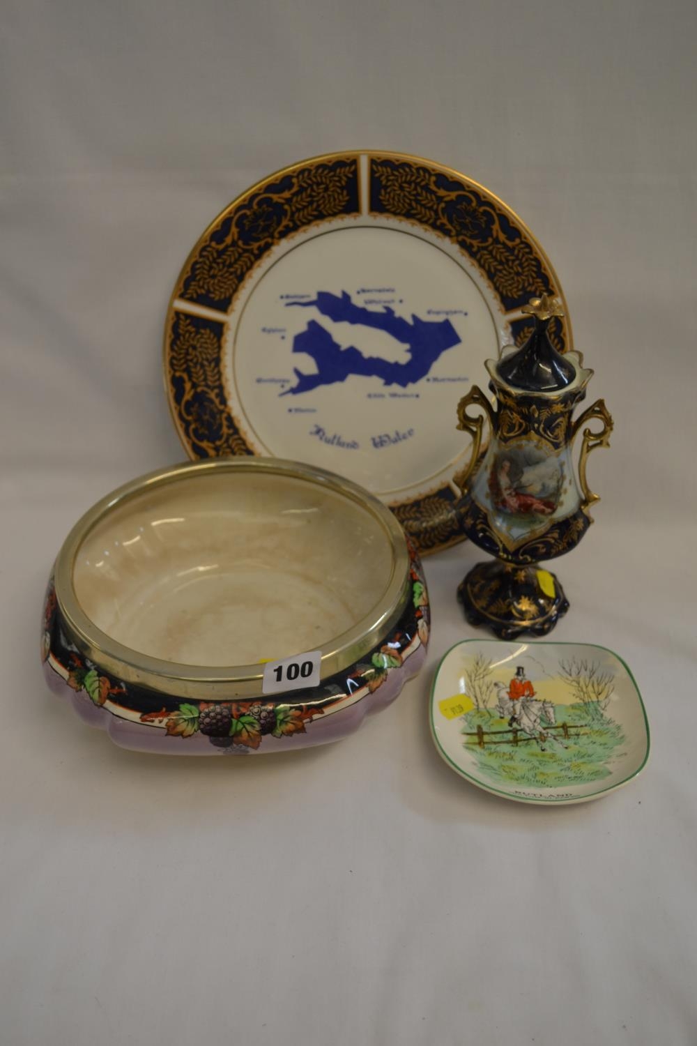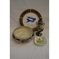 CONTINENTAL 2 HANDLED VASE, DAVENPORT RUTLAND HUNTING DISH, RUTLAND WATER PLATE AND SILVA FRUIT BOWL