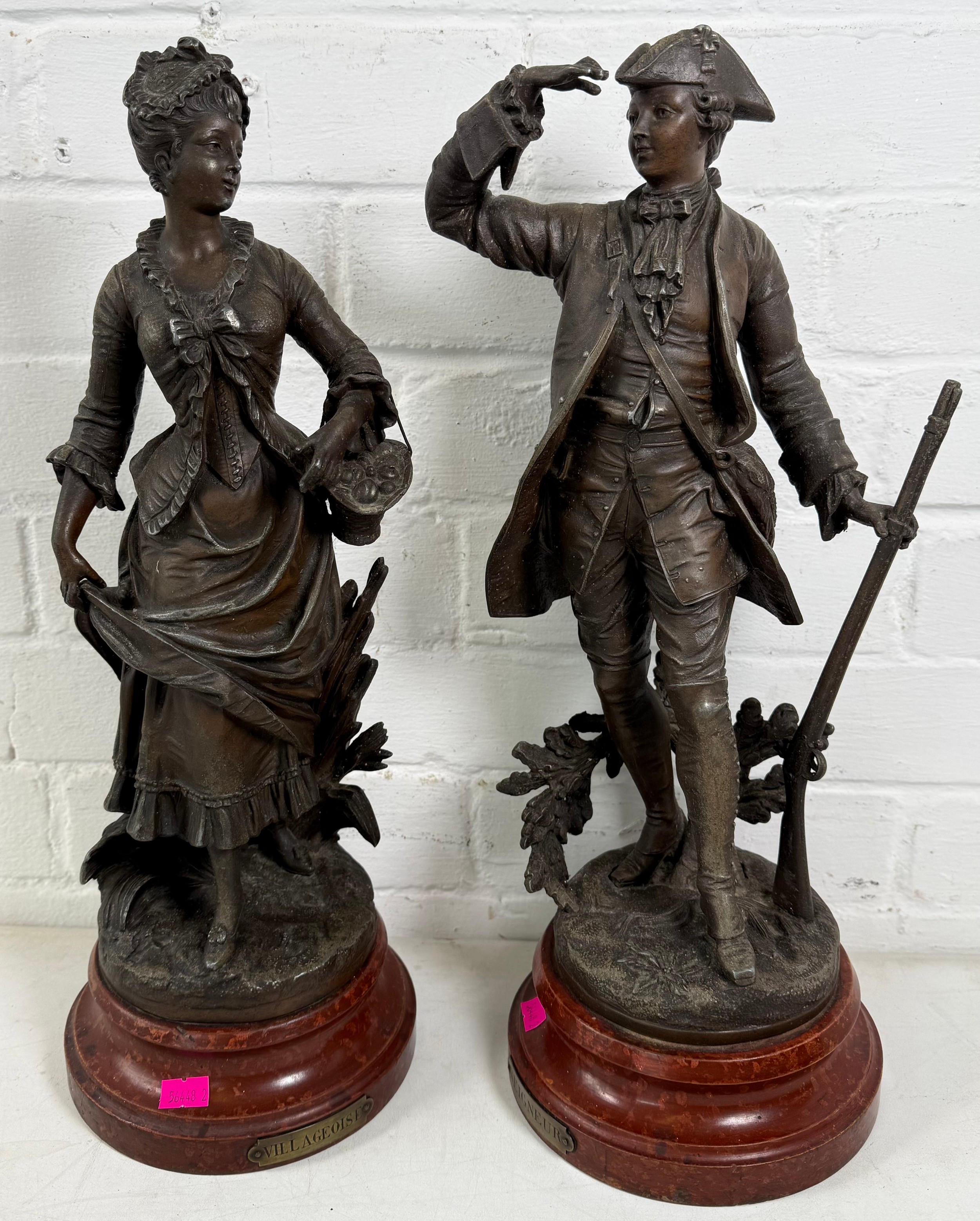 Vintage pair of spelter figures Seigneur and Villageoise