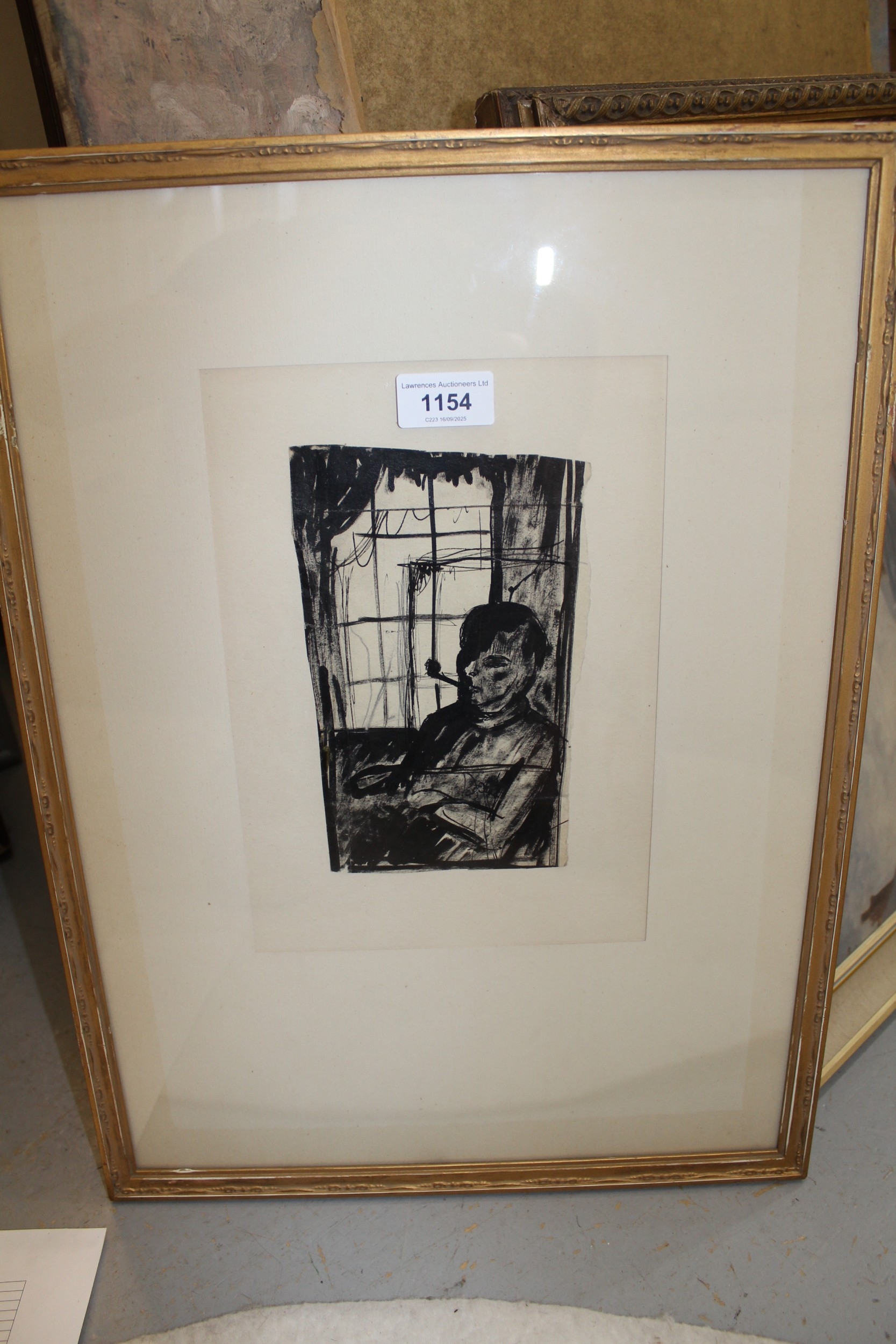 Circle of John Minton, ink drawing, young man seated by a window, 19 x 12cm