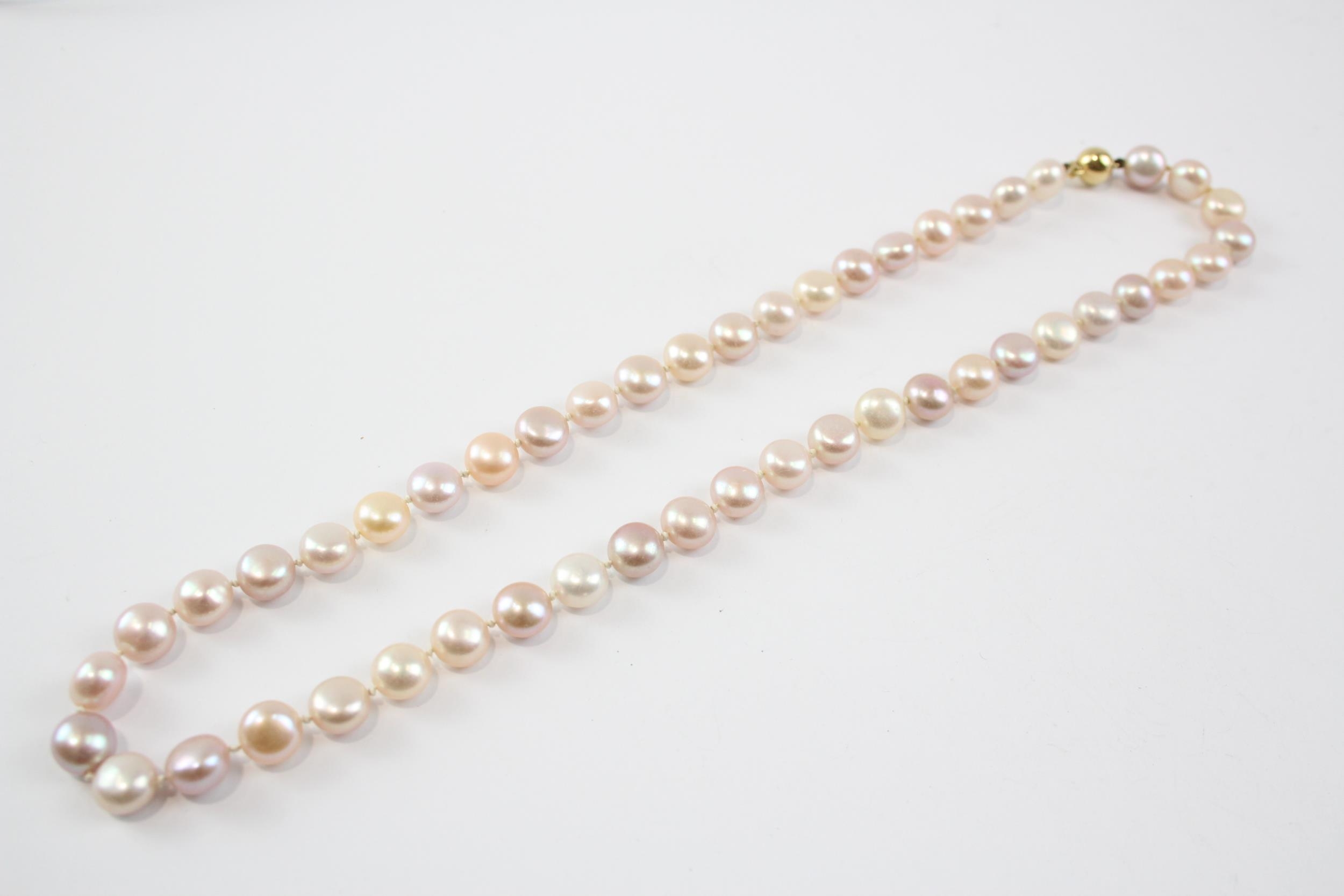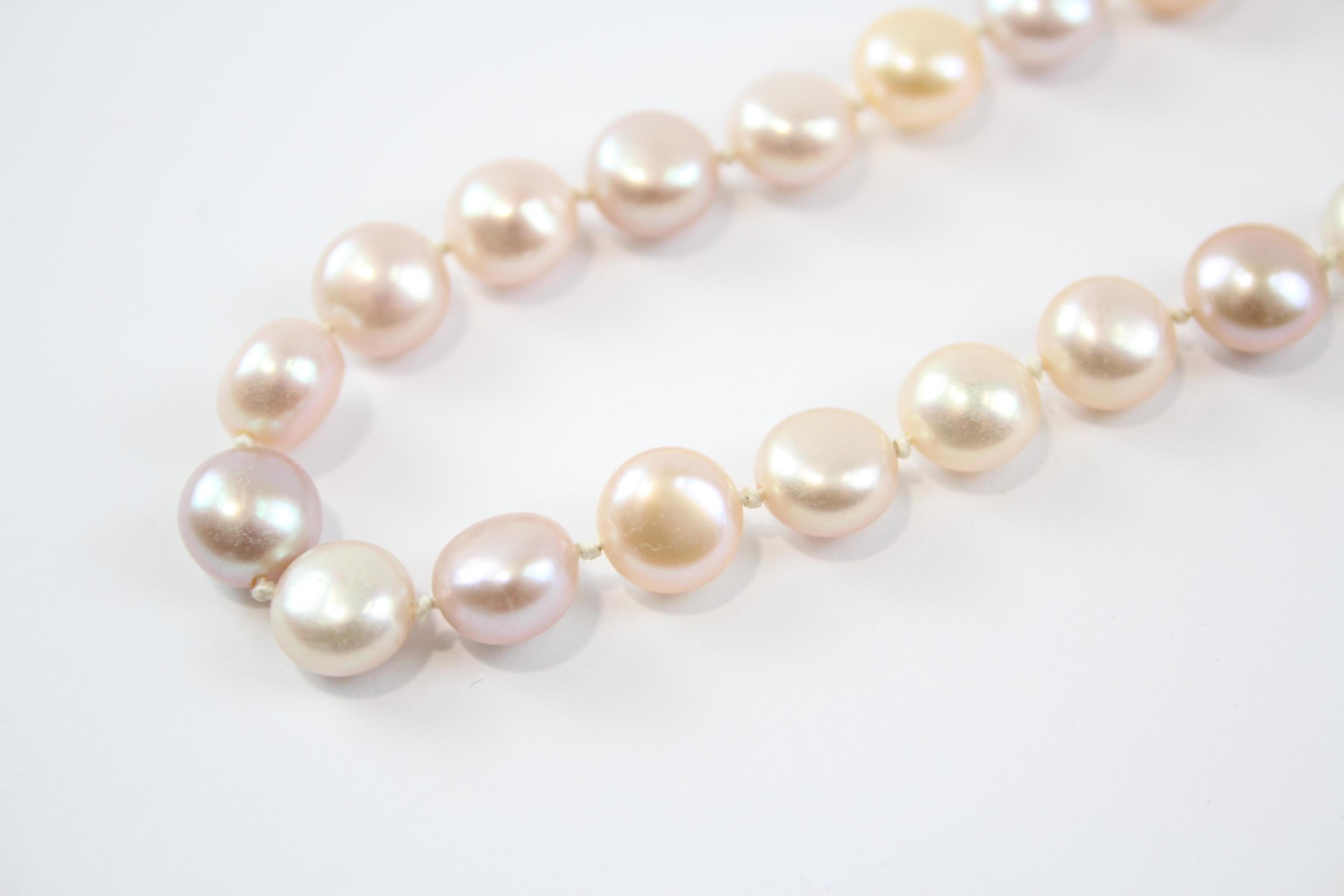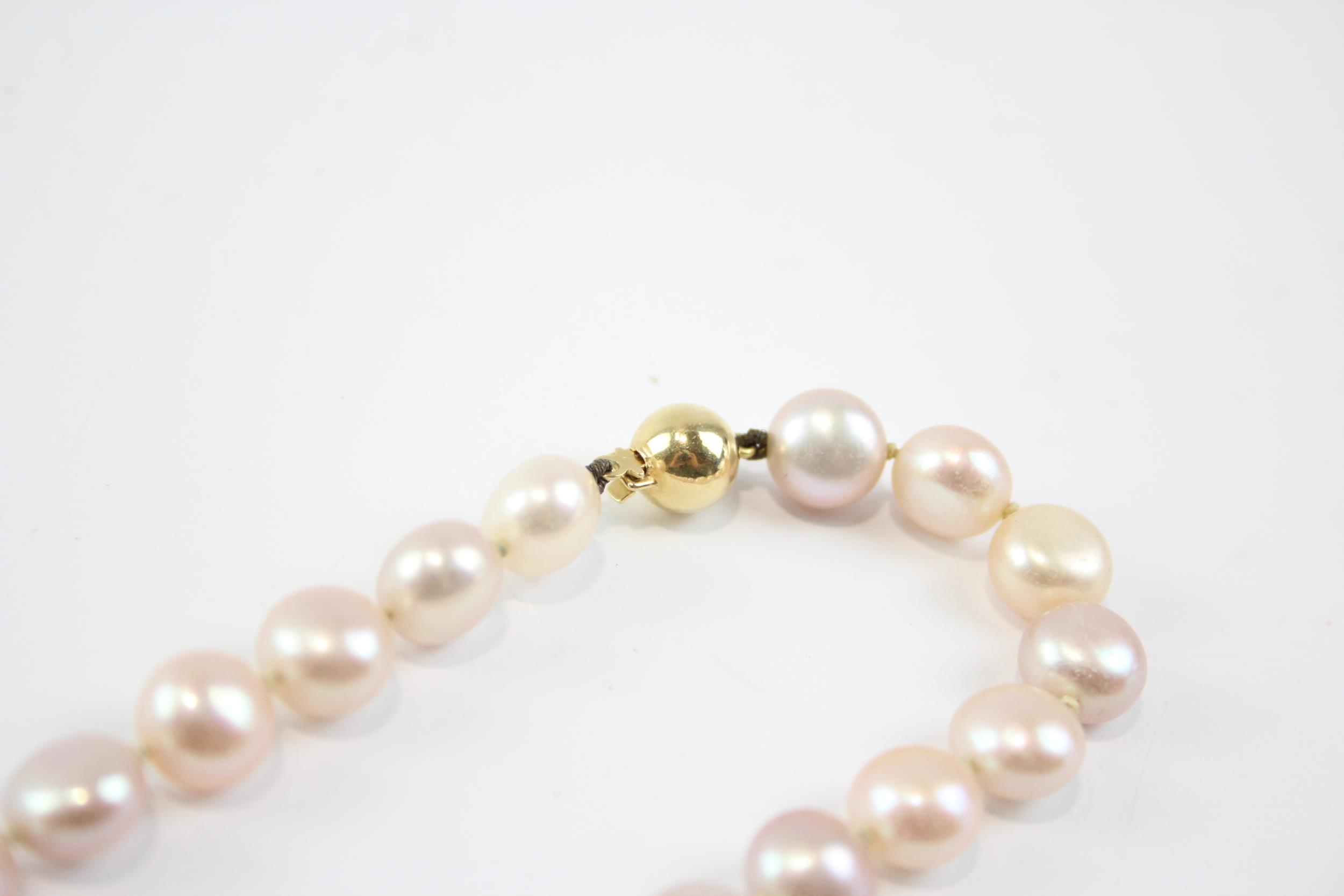 18ct Gold Clasped Pink Cultured Button Pearl Necklace (38.9g)