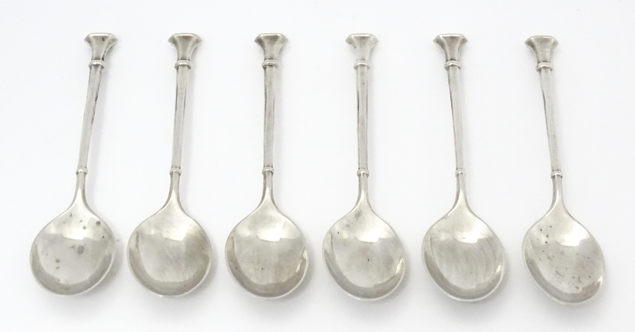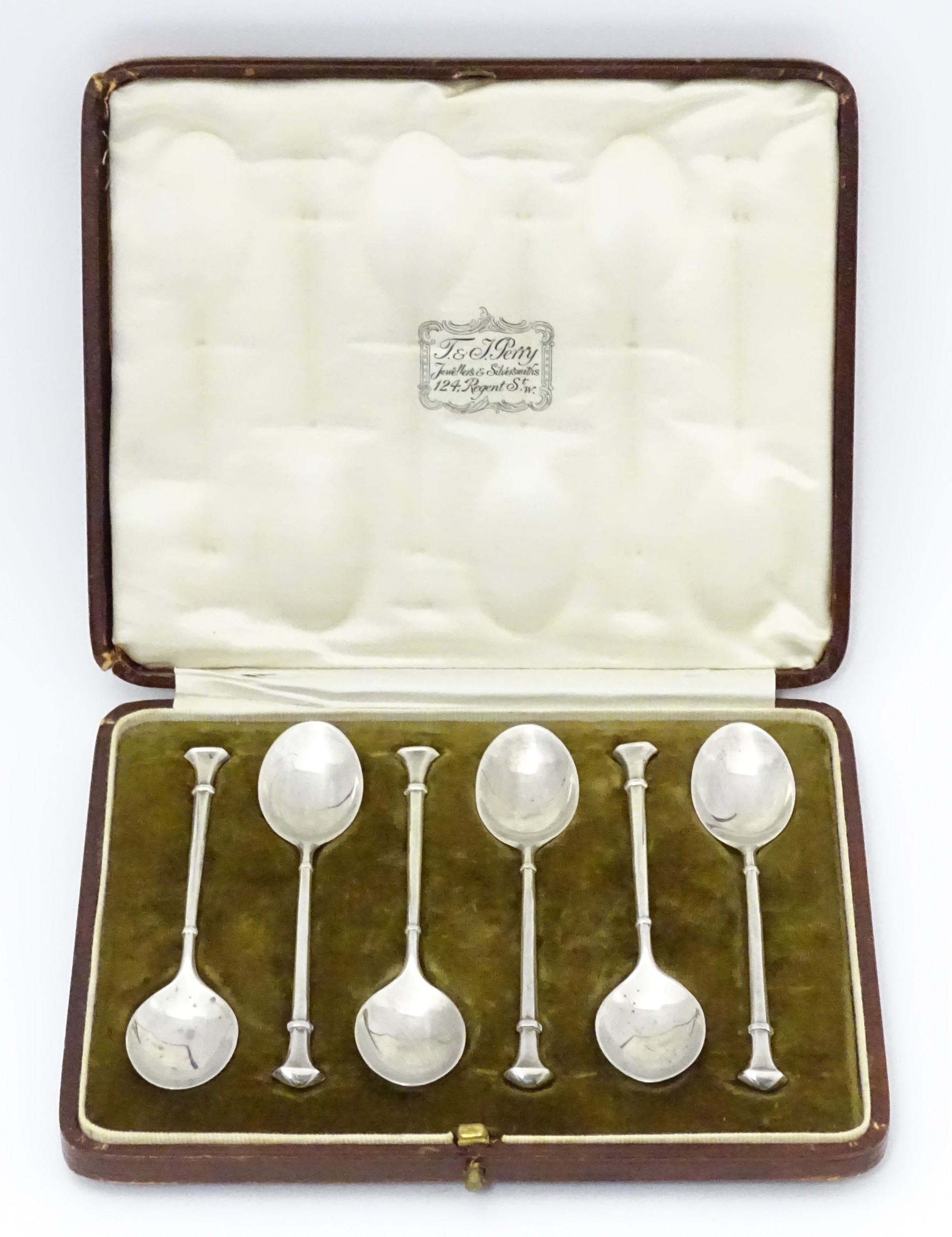 A cased set of six silver teaspoons hallmarked Birmingham 1927, maker Docker & Burn. Spoons approx. 4 1/4" long (TW approx. 67g)