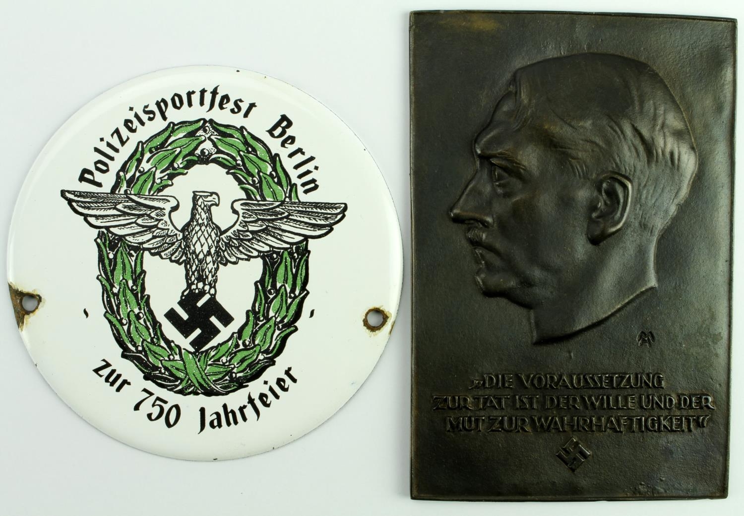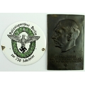 German Nazi Hitler plaque (90mm x140mm), with an enamelled Police plaque (11cm). (2)