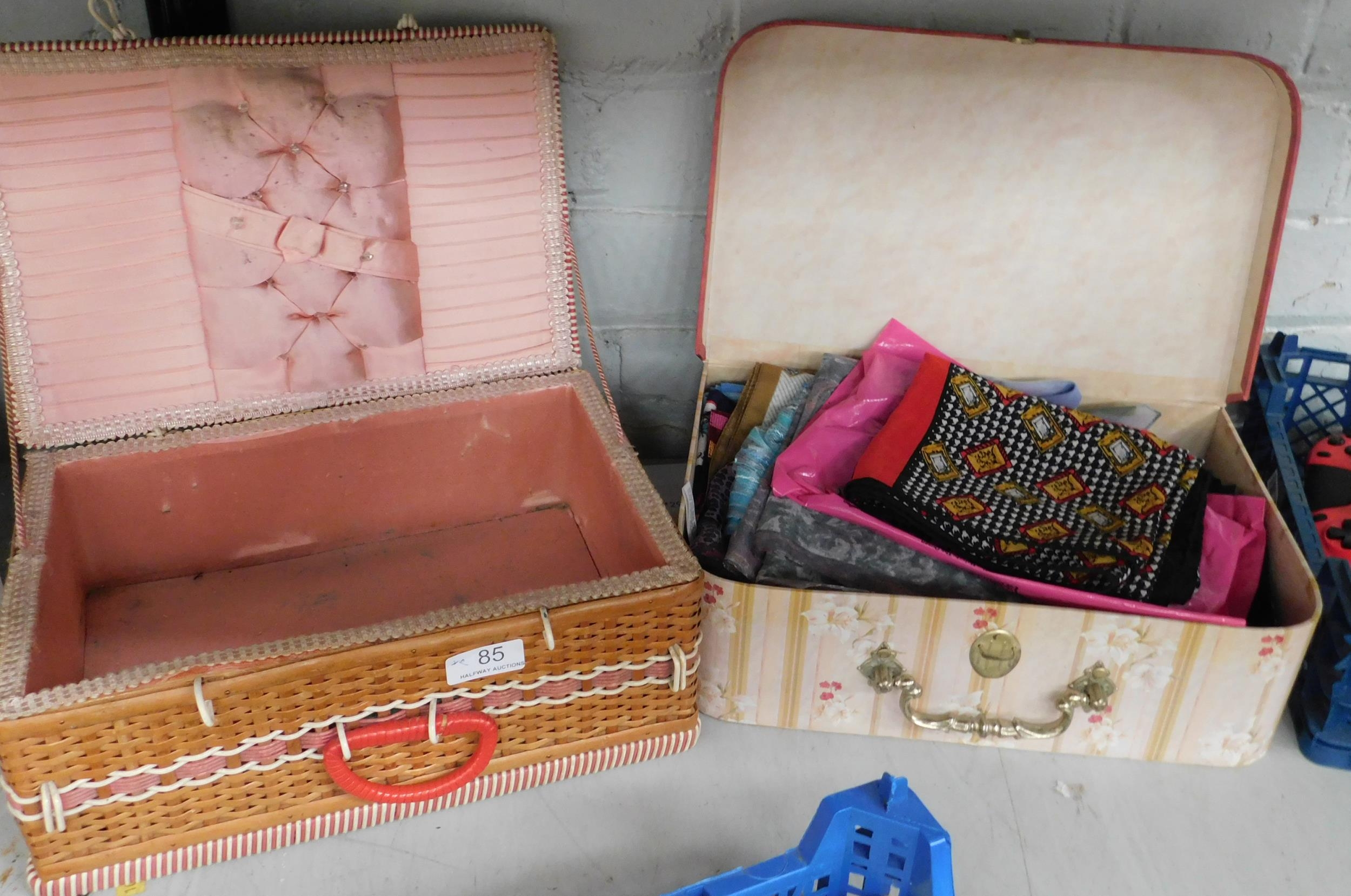 Vintage sewing box and case of scarves