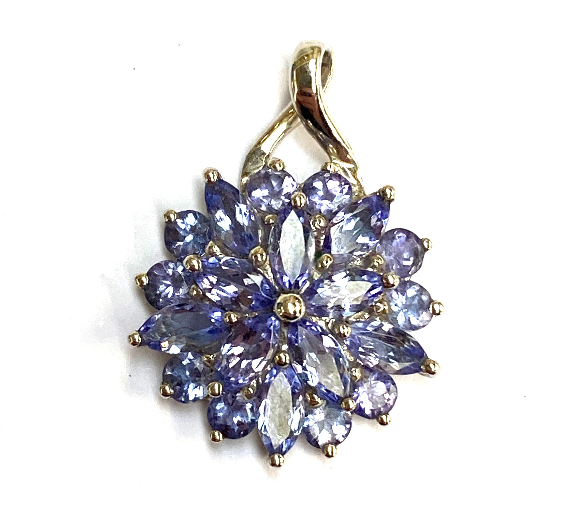A 9ct white gold and tanzanite floral cluster pendant, 1.5cmW, 2.2g