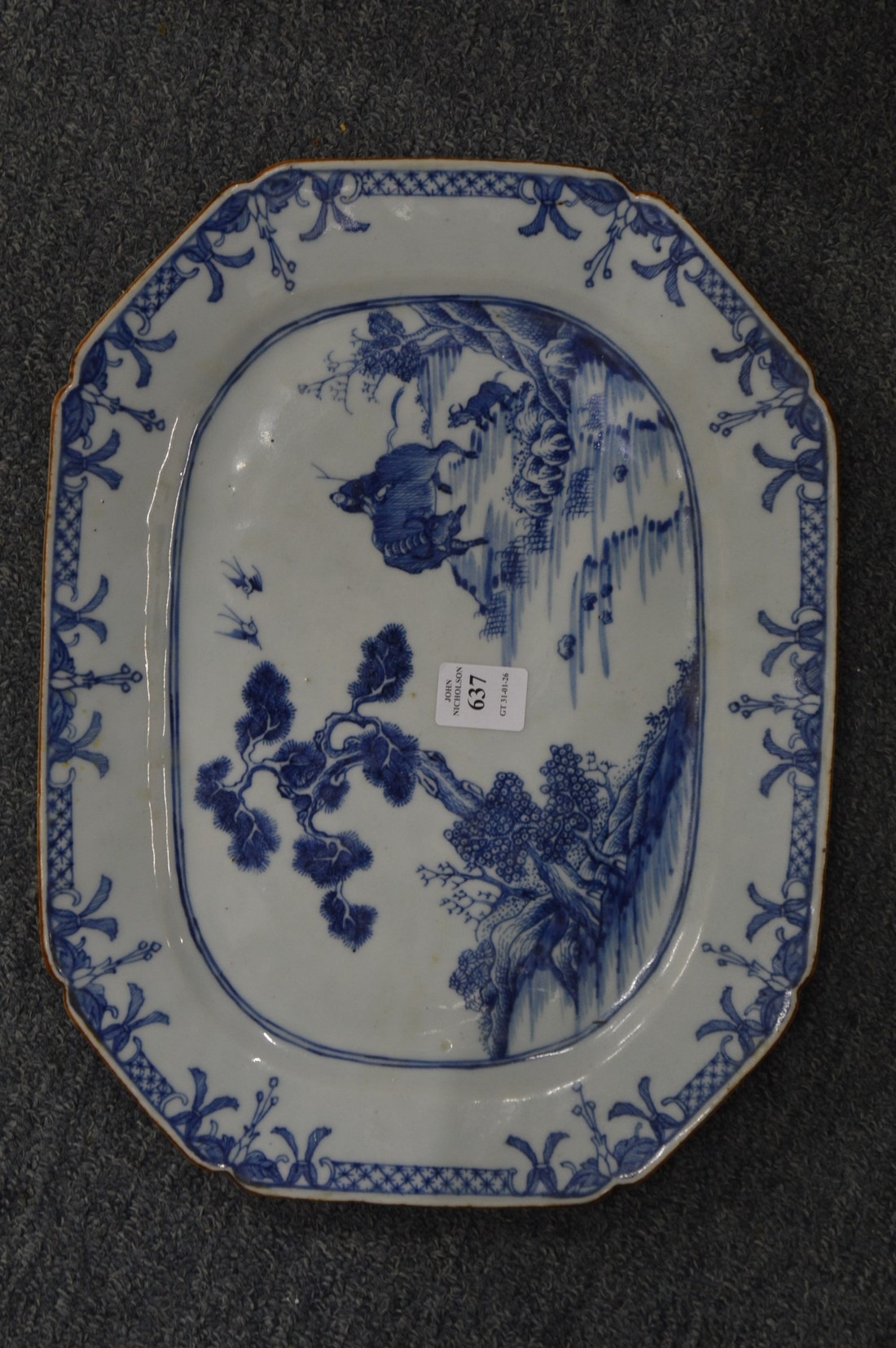 An early 20th century Chinese blue and white octagonal shaped dish.