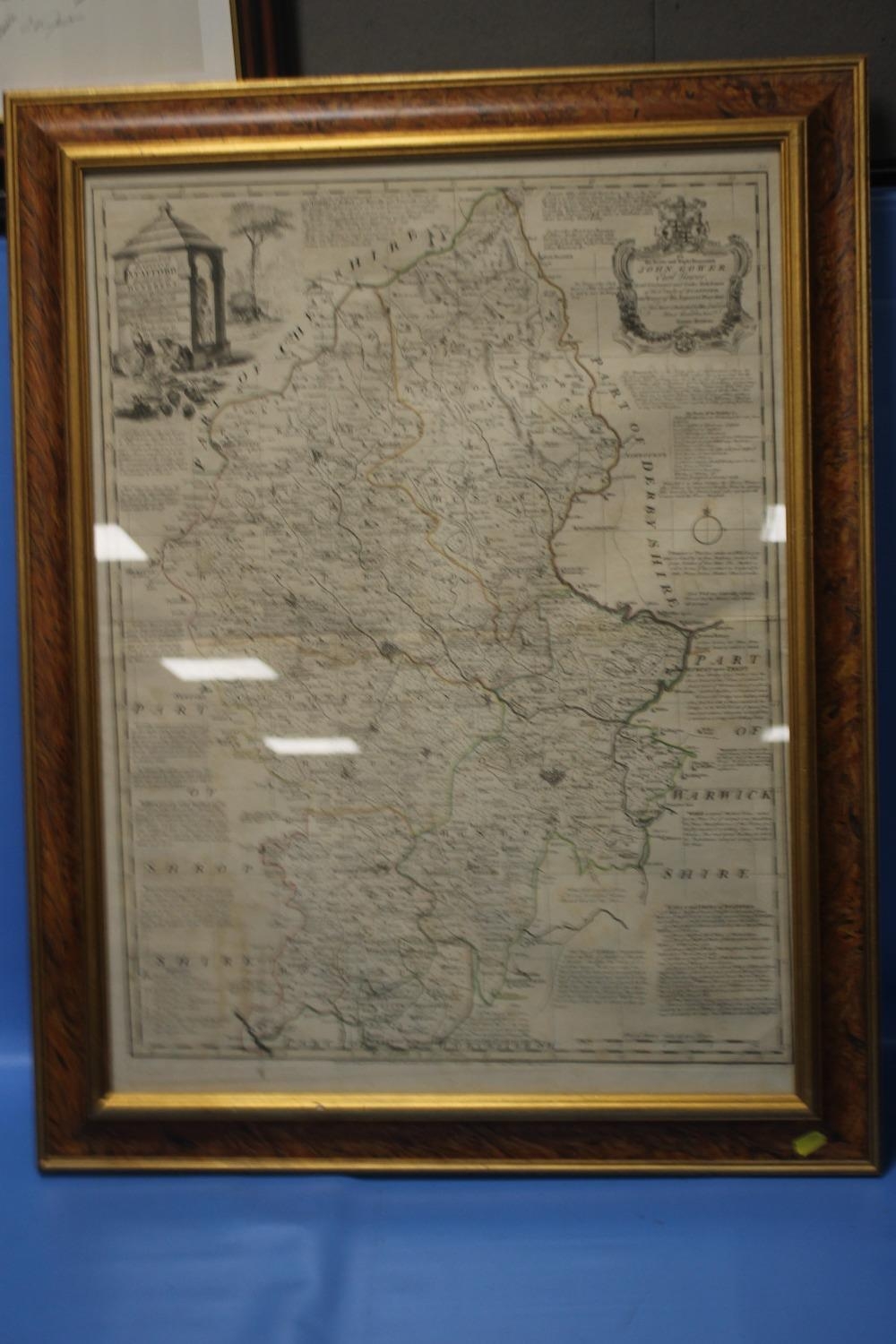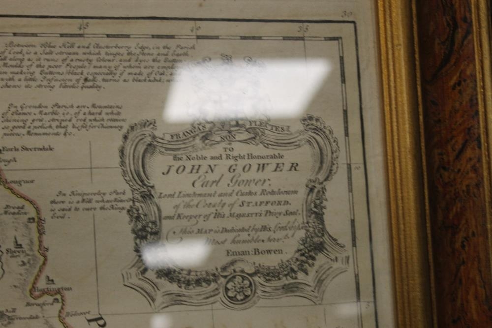 EMANUEL BOWEN MAP OF STAFFORDSHIRE c.1760 from 'The Large English Atlas', cartouche dedicated to 'The Noble and Right Honourable John Gower', has original outline colour and is framed and glazed, frame size 88 x 67 cm
