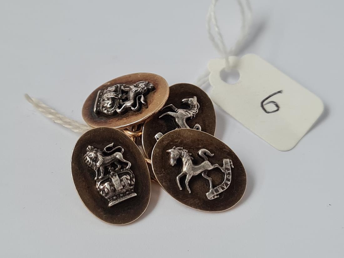 A pair of oval cufflinks with regimental crest in 9ct - 12.7gms