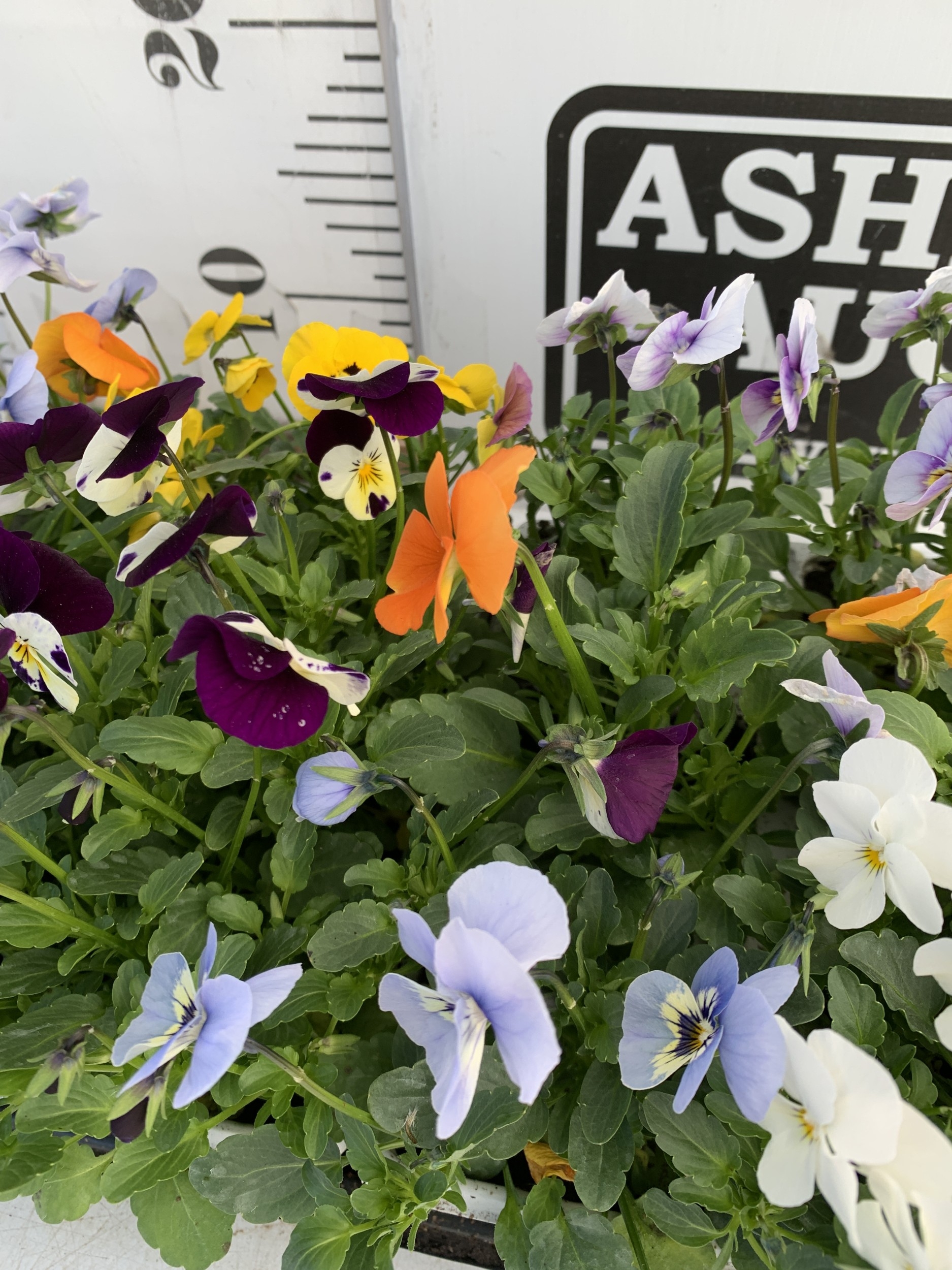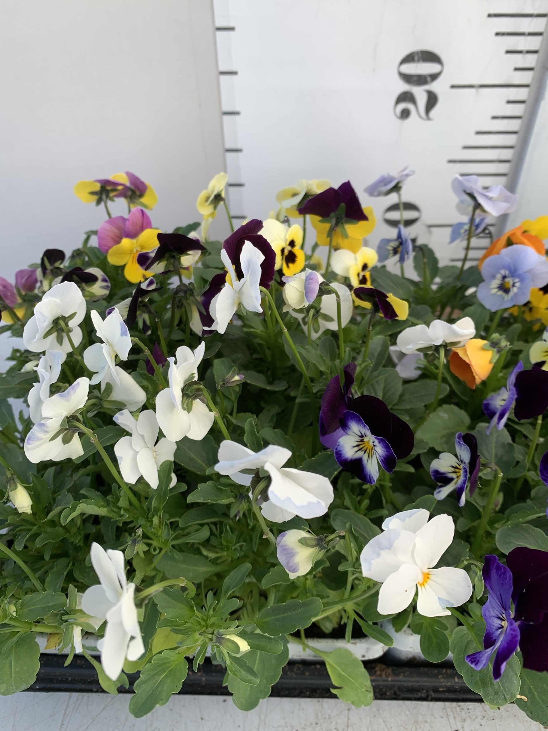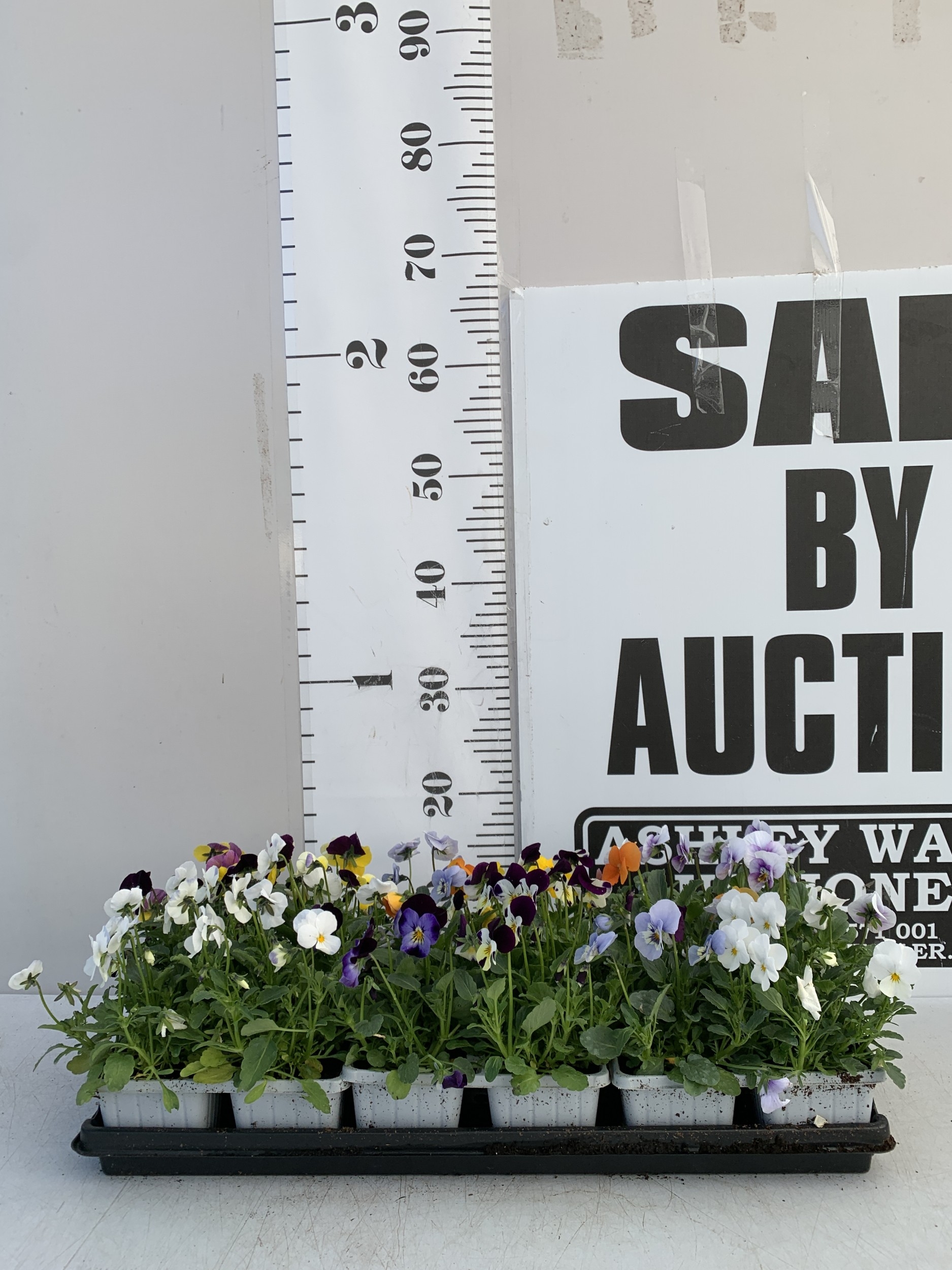 EIGHTEEN MIXED COLOUR SORBET VIOLAS ON THREE TRAYS. TO BE SOLD FOR THE EIGHTEEN