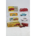 A boxed Corgi toys 232 Fiat 2100, Boxed Dinky Toys 166 Sunbeam Rapier Saloon, Boxed Dinky Toys Airport Fire tender and a Budgie Toys British Railways 00 Gauge Articulated container Transporter