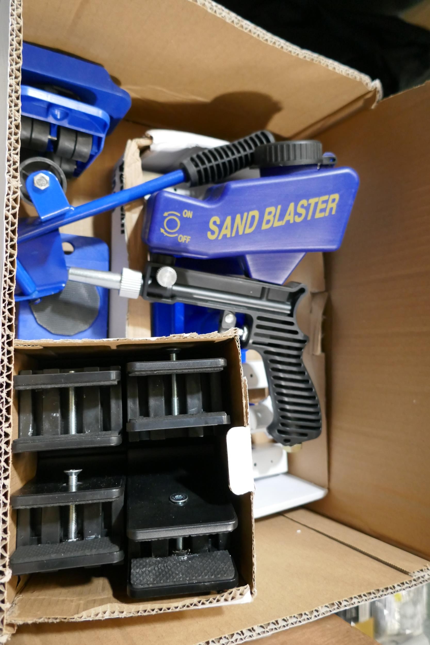 Sandblaster, furniture moving casters & others *This lot is subject to vat