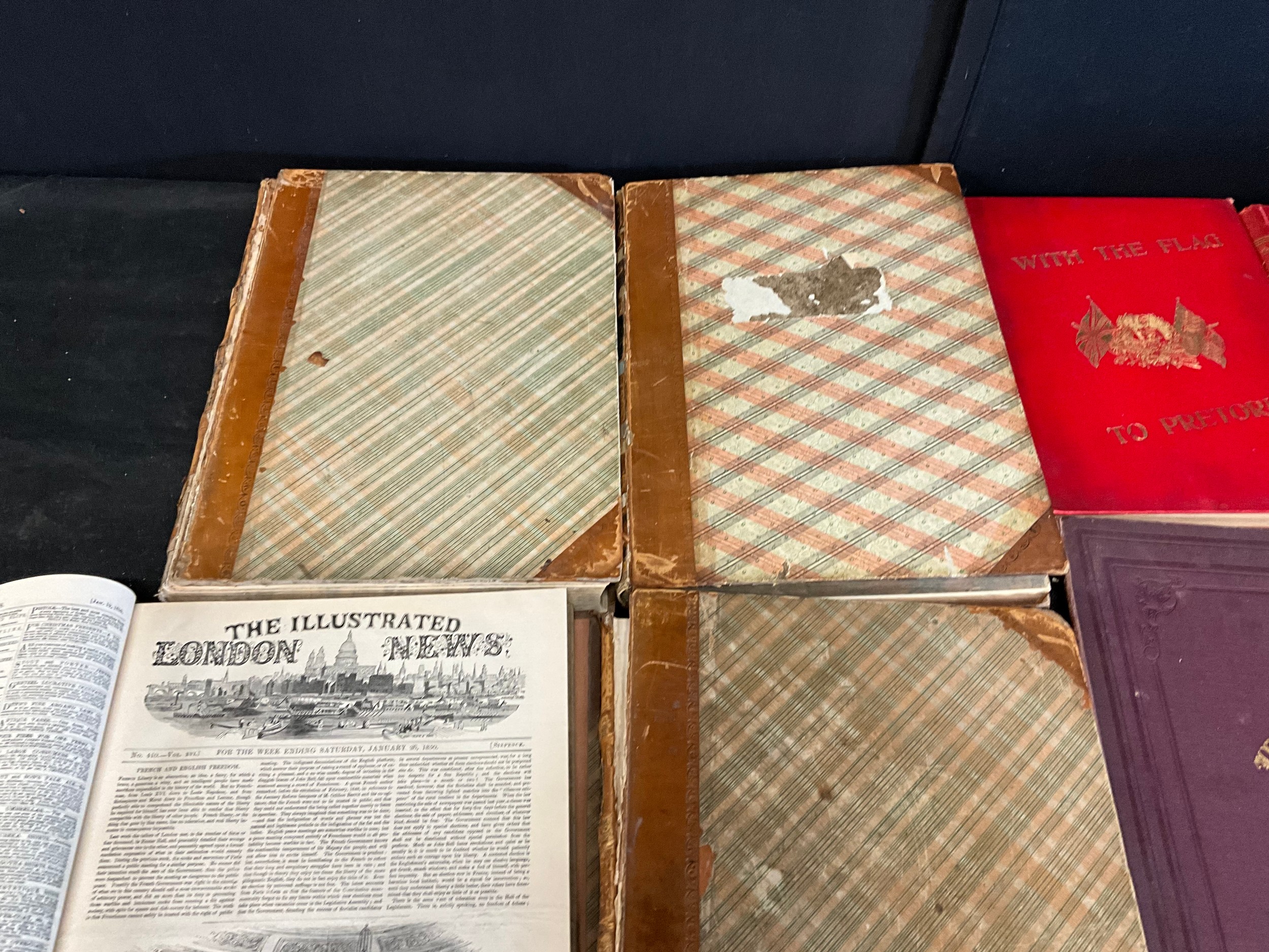 BOX OF BOOKS TO INCLUDE WITH THE FLAG TO PRETORIA, ILLUSTRATIONS OF THE ANTIQUARY