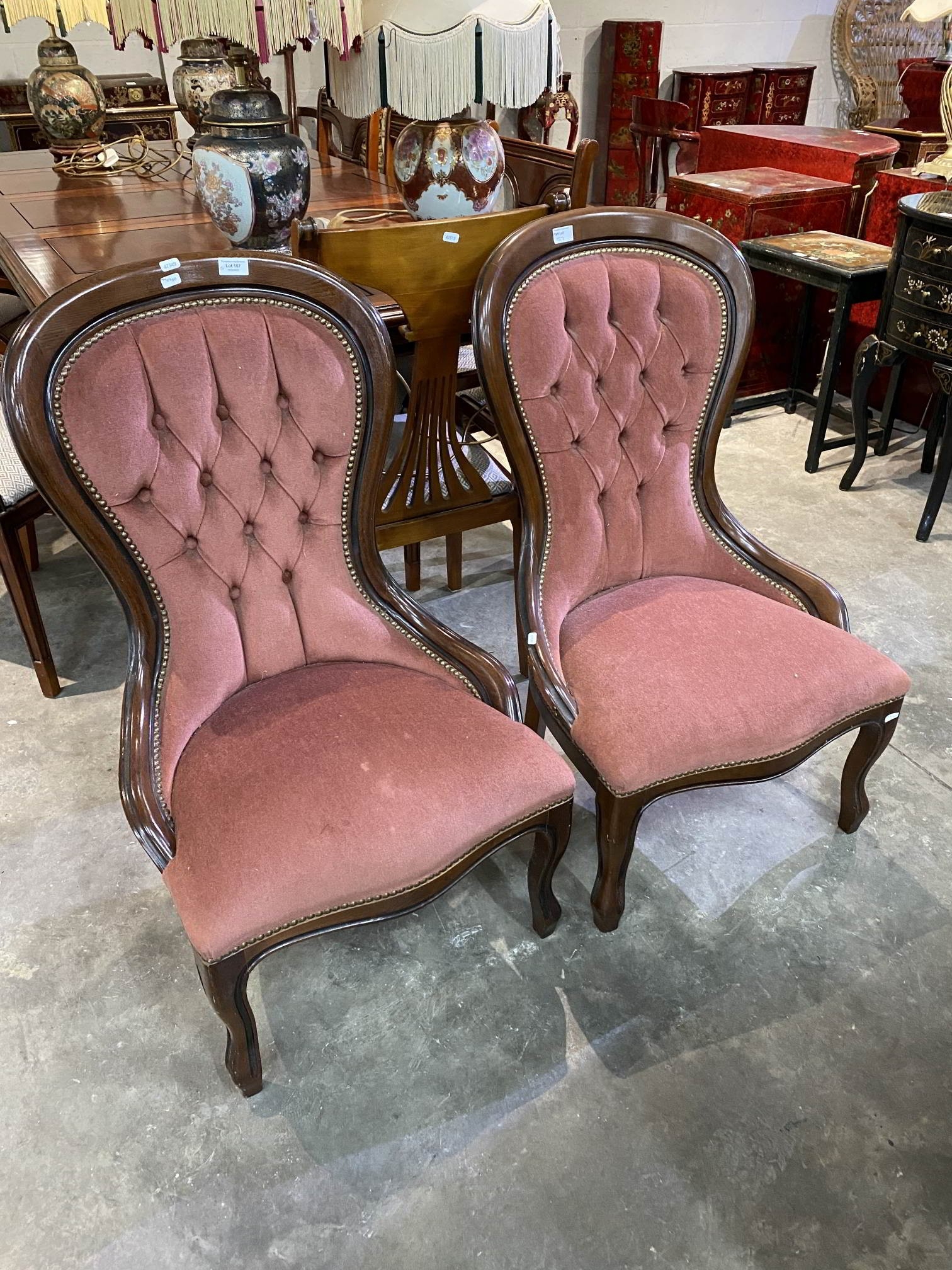 Pair of mahogany framed bedroom chairs 94H 57W 50D