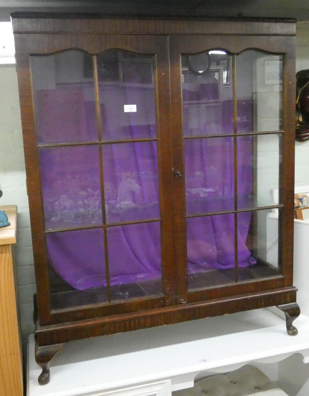 A 1950's mahogany china display cabinet fitted two glazed doors on small cabriole legs