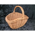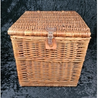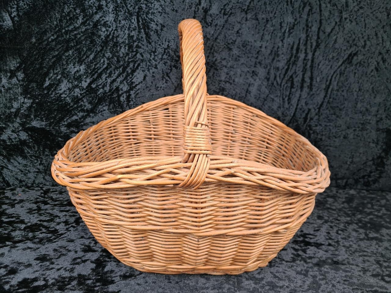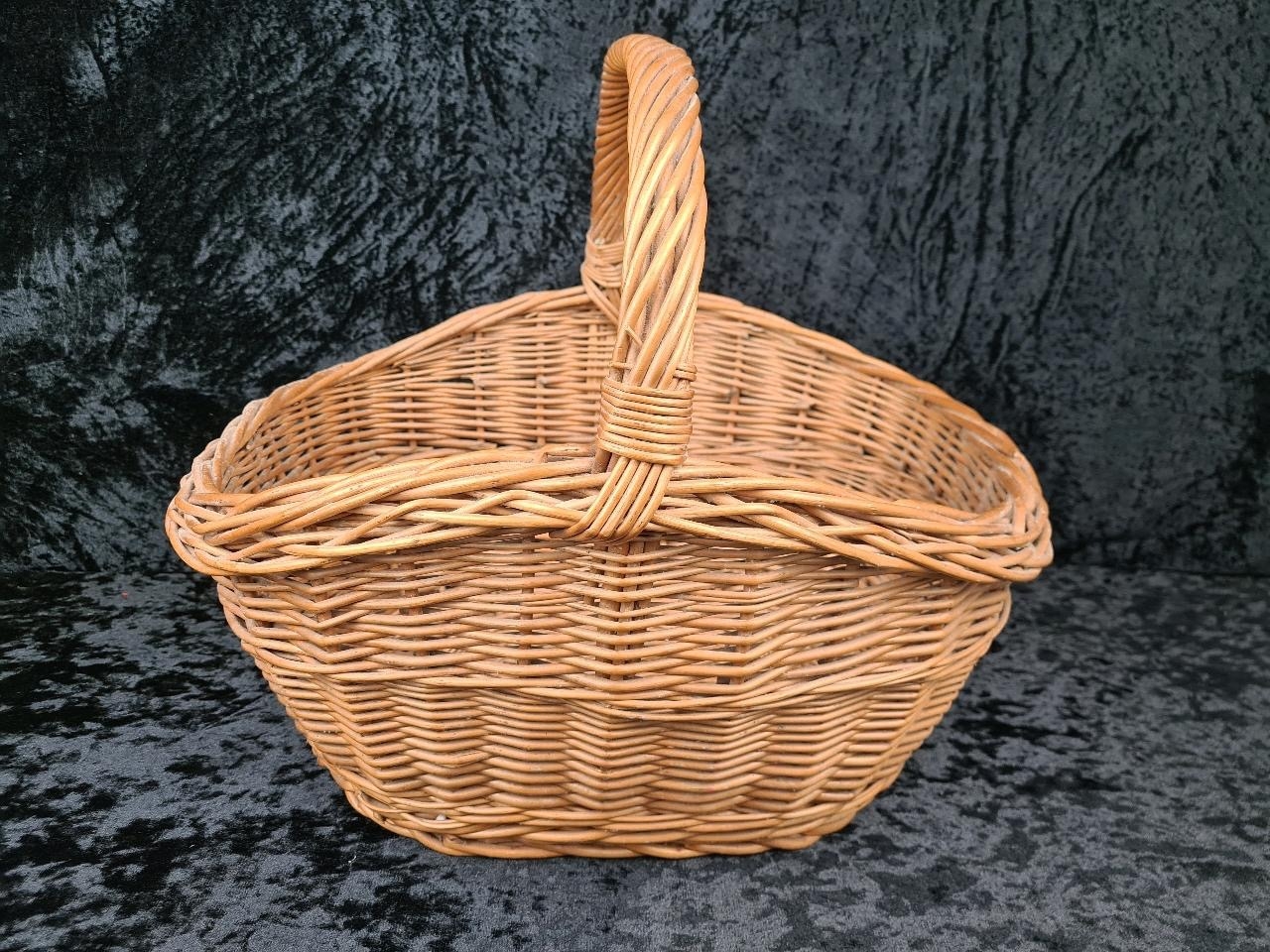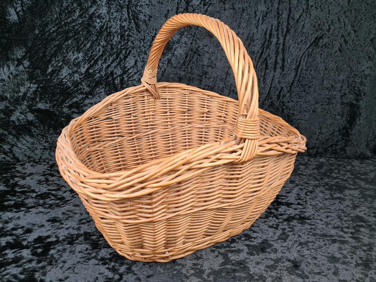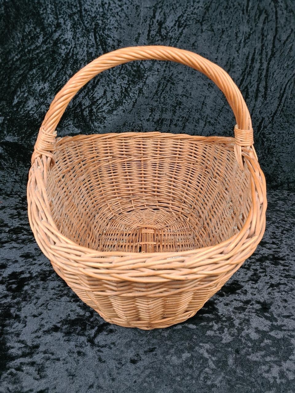 Solid and sturdy large wicker basket.