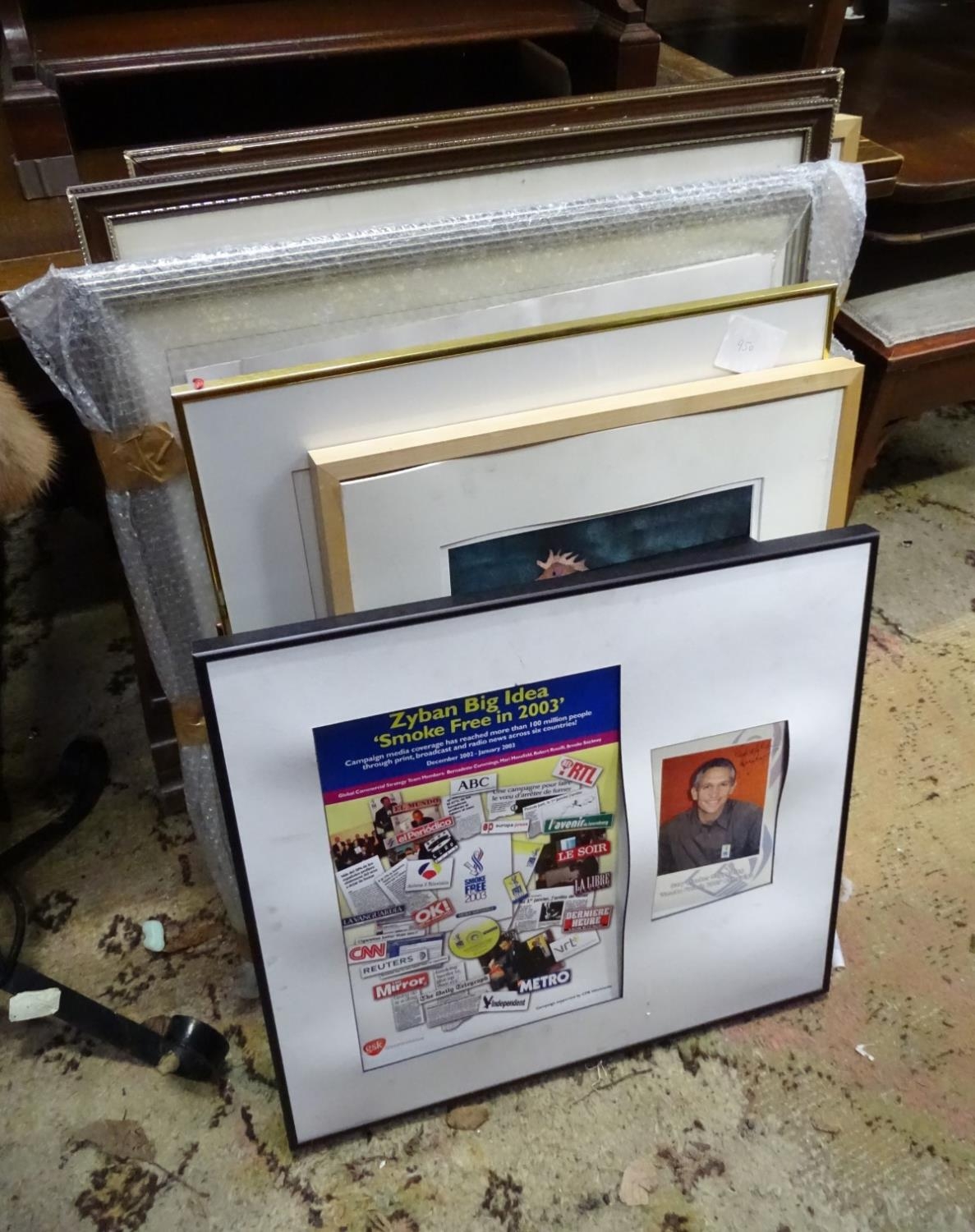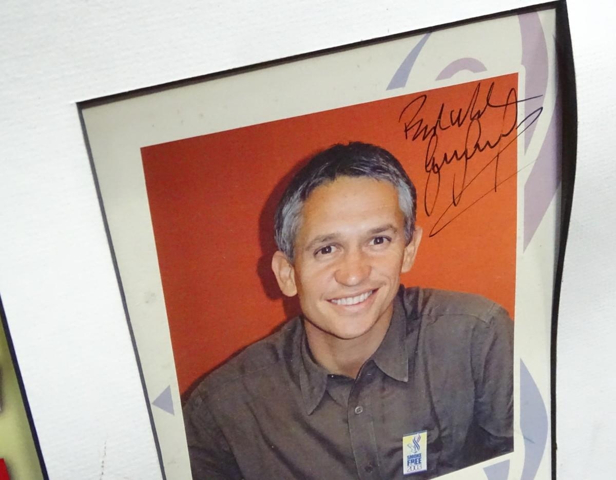 A quantity of pictures, a framed, signed picture of Gary Lineker