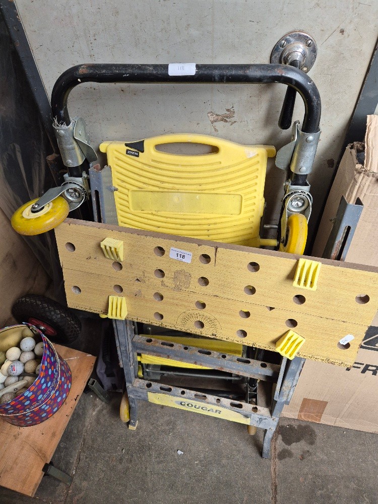 A Cougar work bench and a convertible 3 step fold up ladder/sack truck