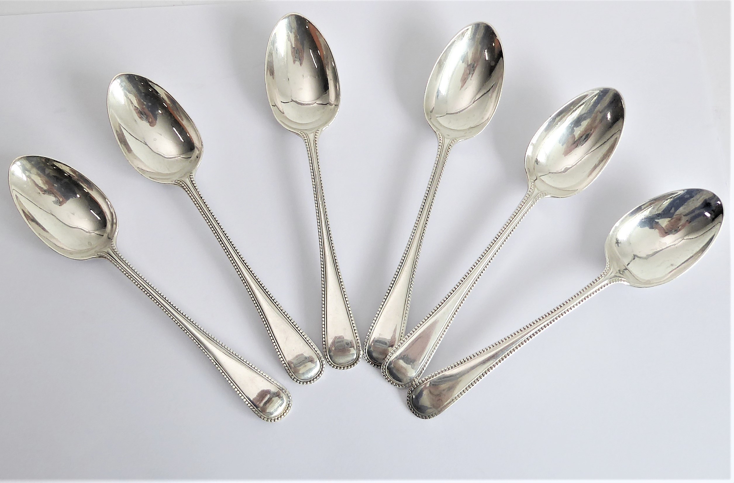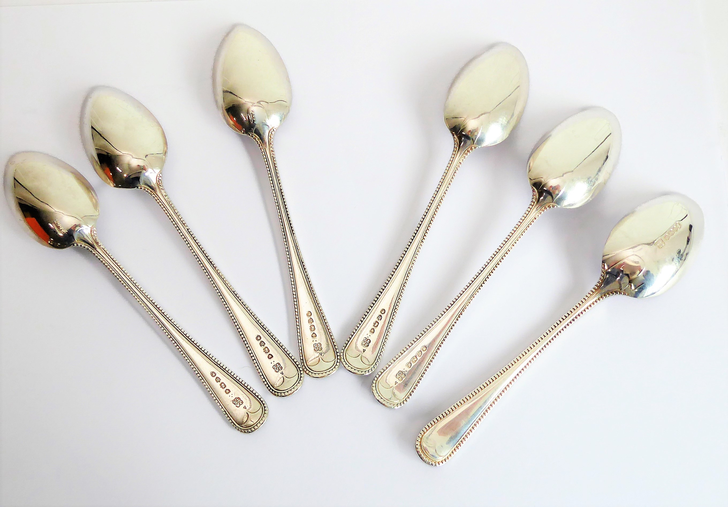 A set of six 19th century hallmarked silver teaspoons having beaded edges.