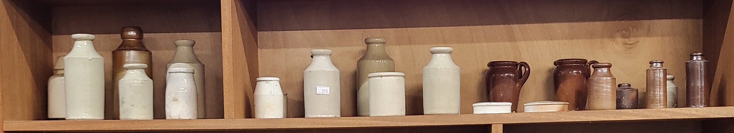 Twenty-five items of stoneware bottles and jars. Largest 28cm. (25)