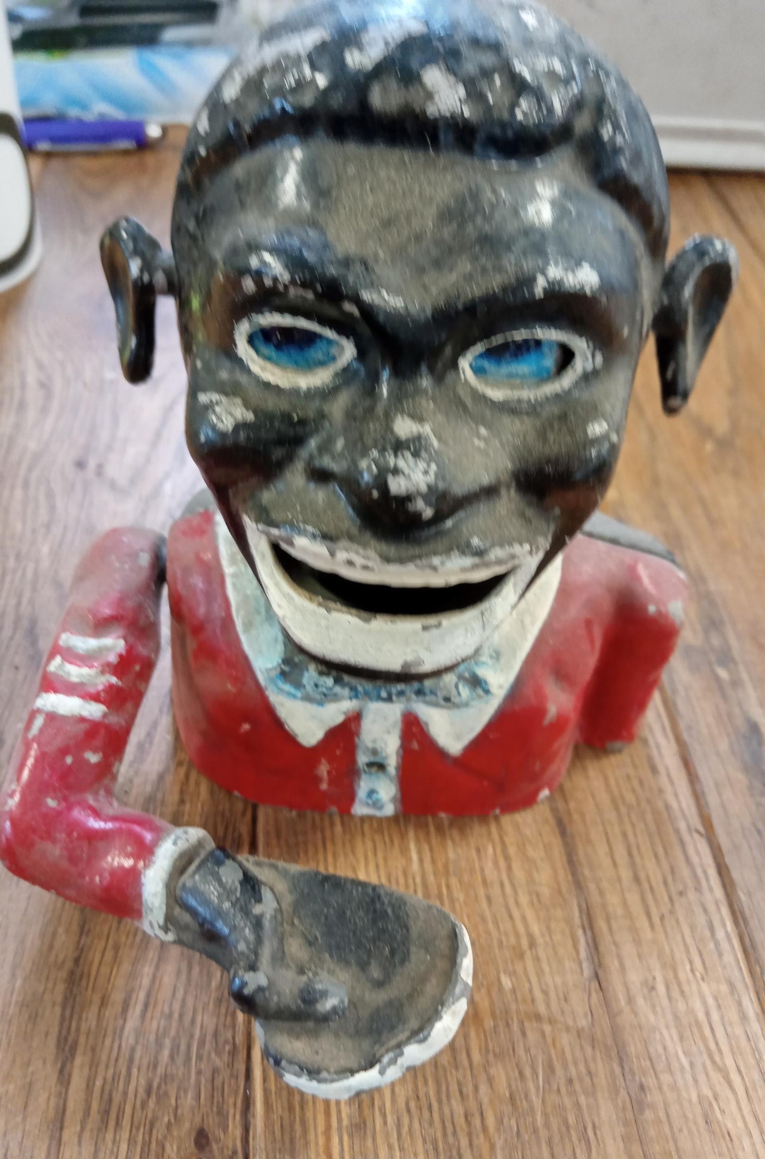 The vintage hand to mouth money box bank