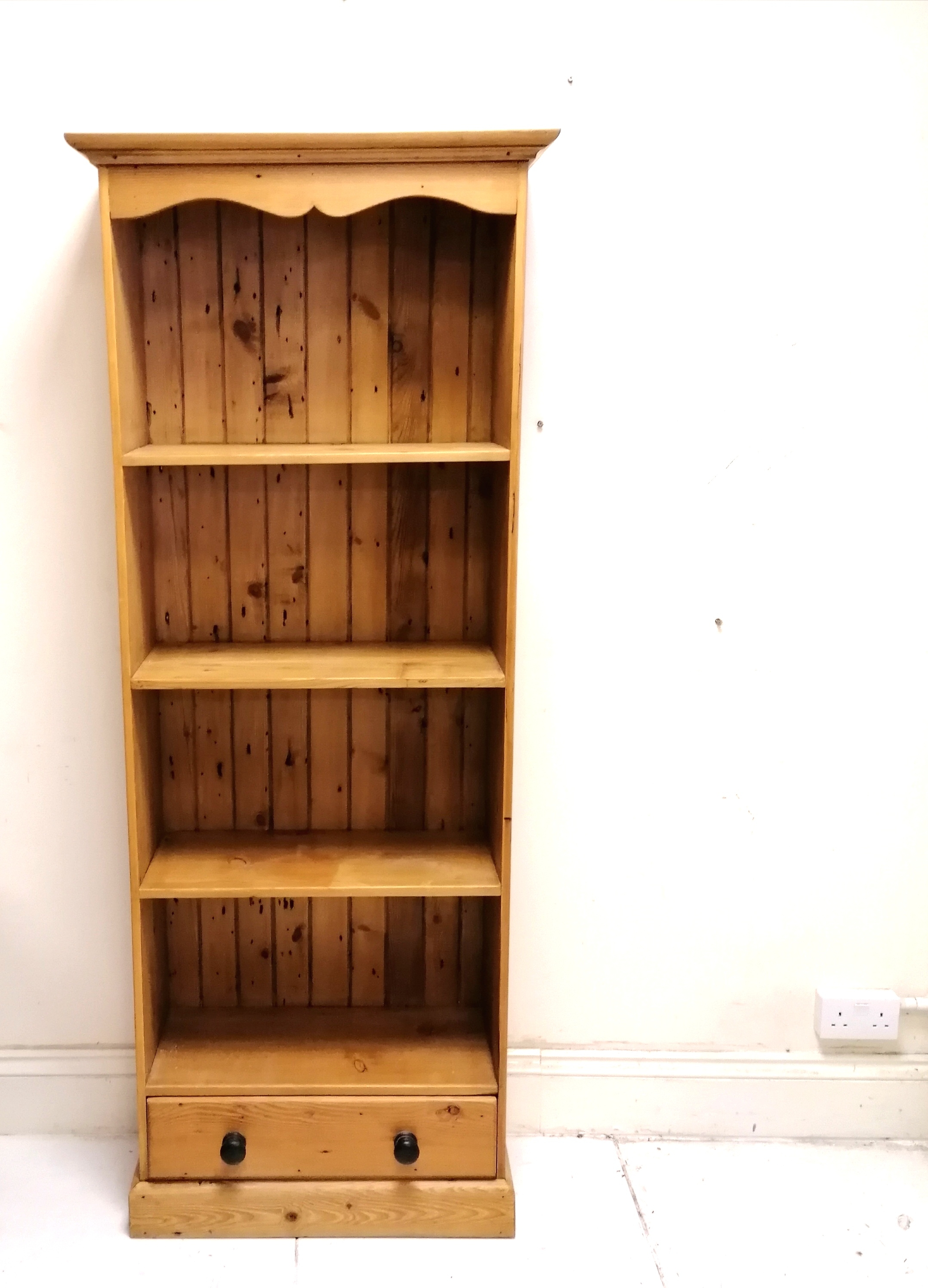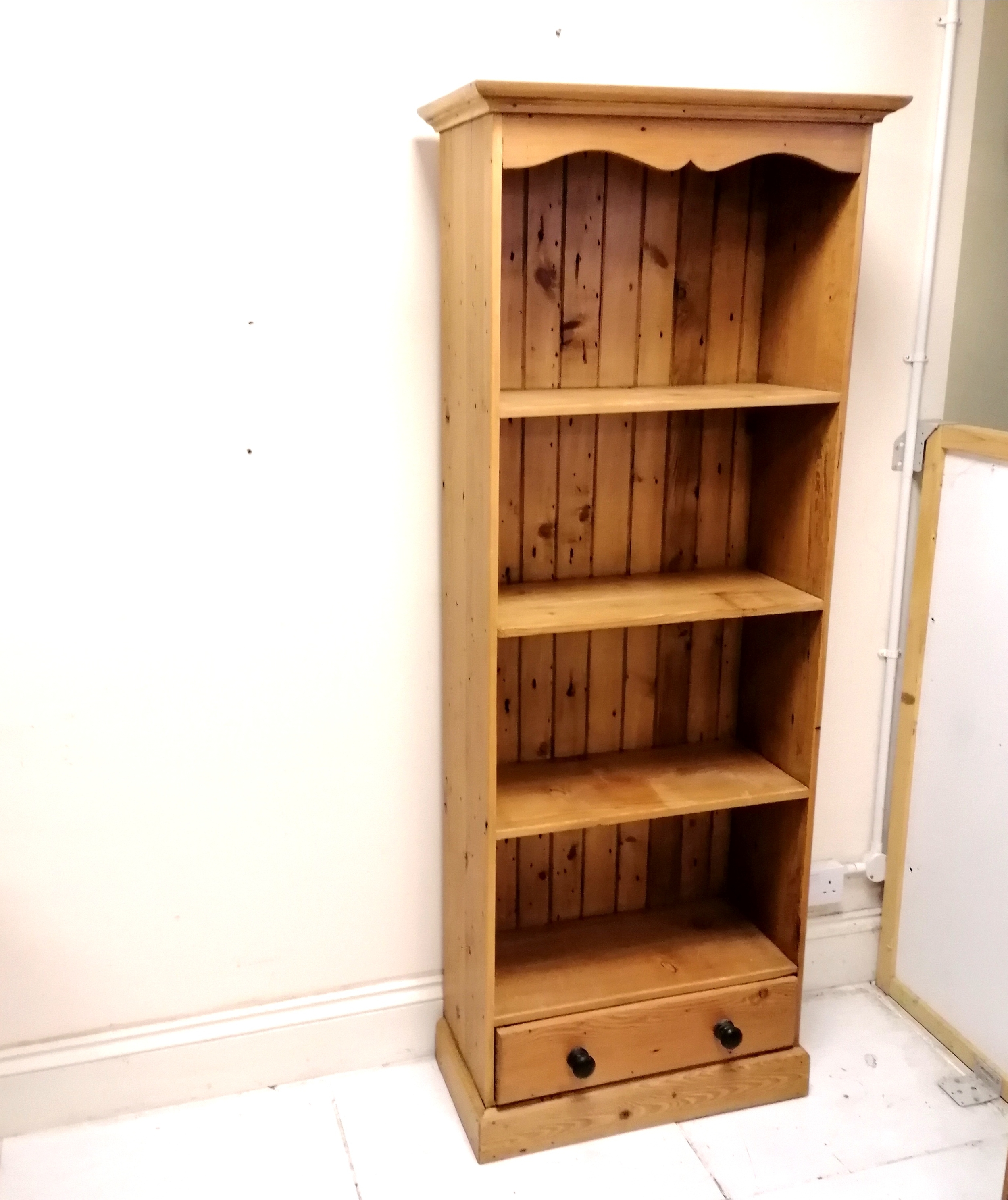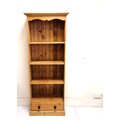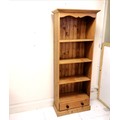 Pine tall shelf unit with drawer to base - 64cm x 29cm x 182cm