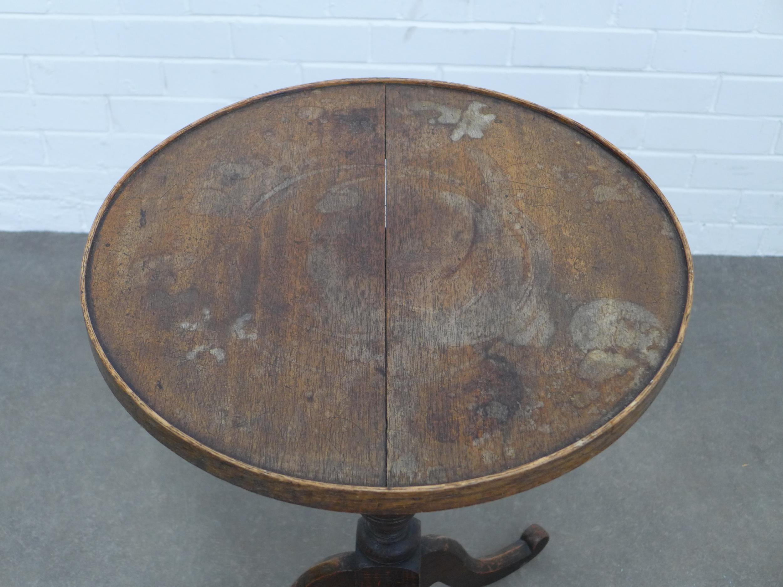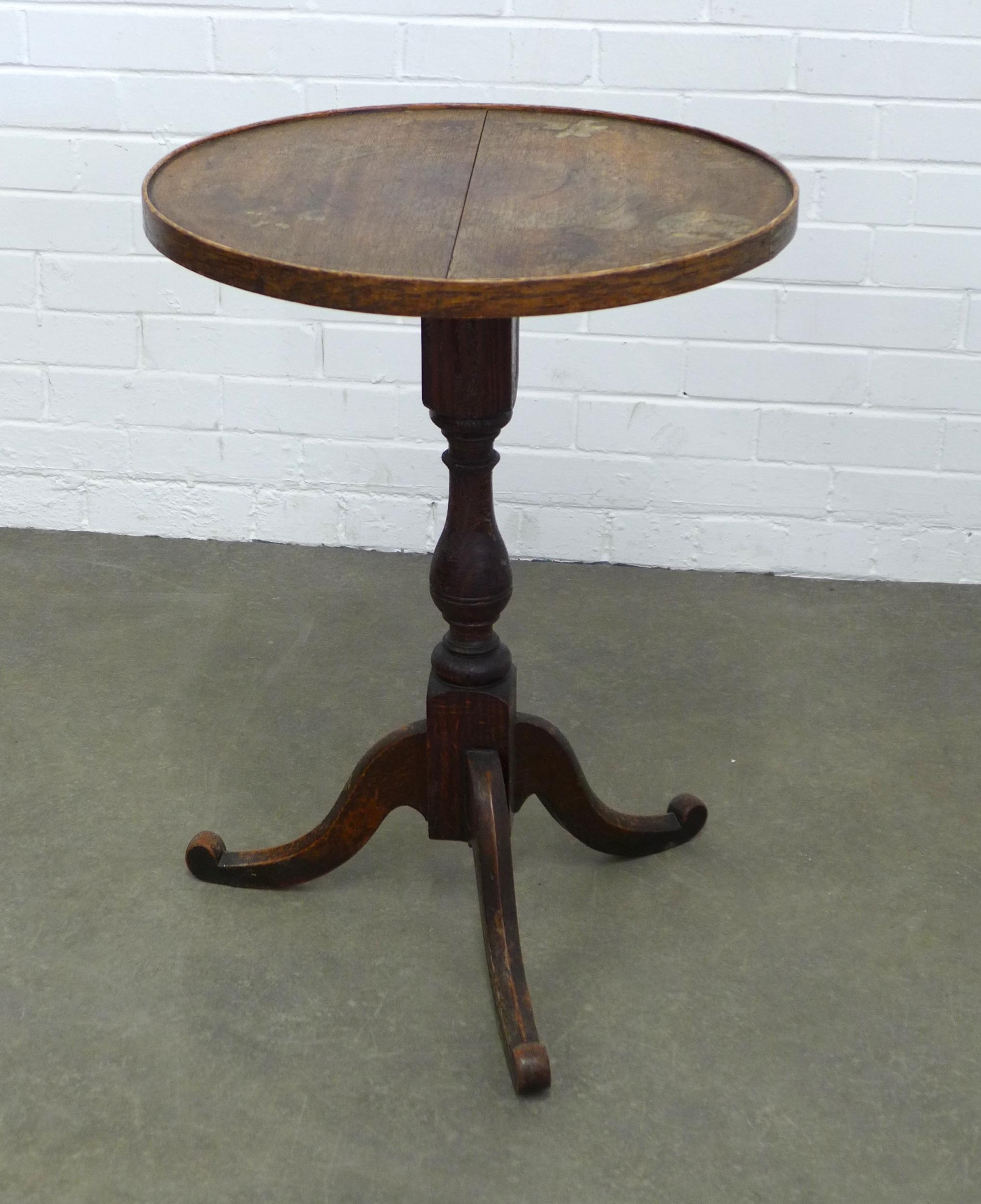 Late 19th century pedestal wine table, oak top a/f 52 x 71cm.