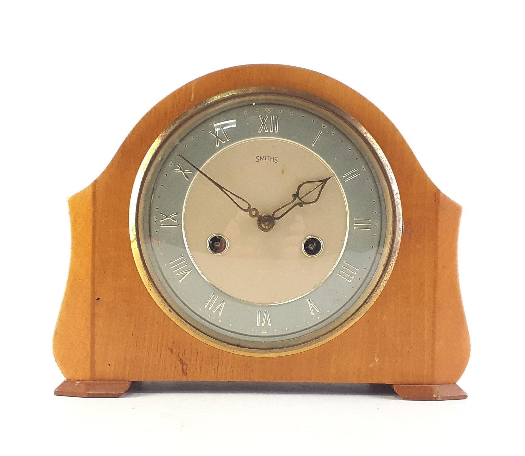 An SMITHS mantle clock. No key. Untested. Standing 57cm tall.