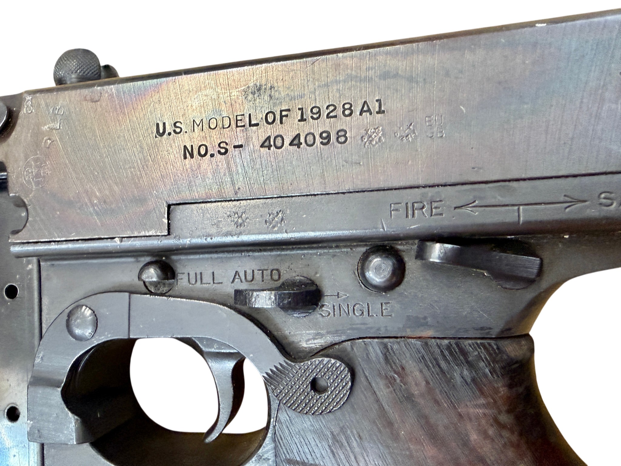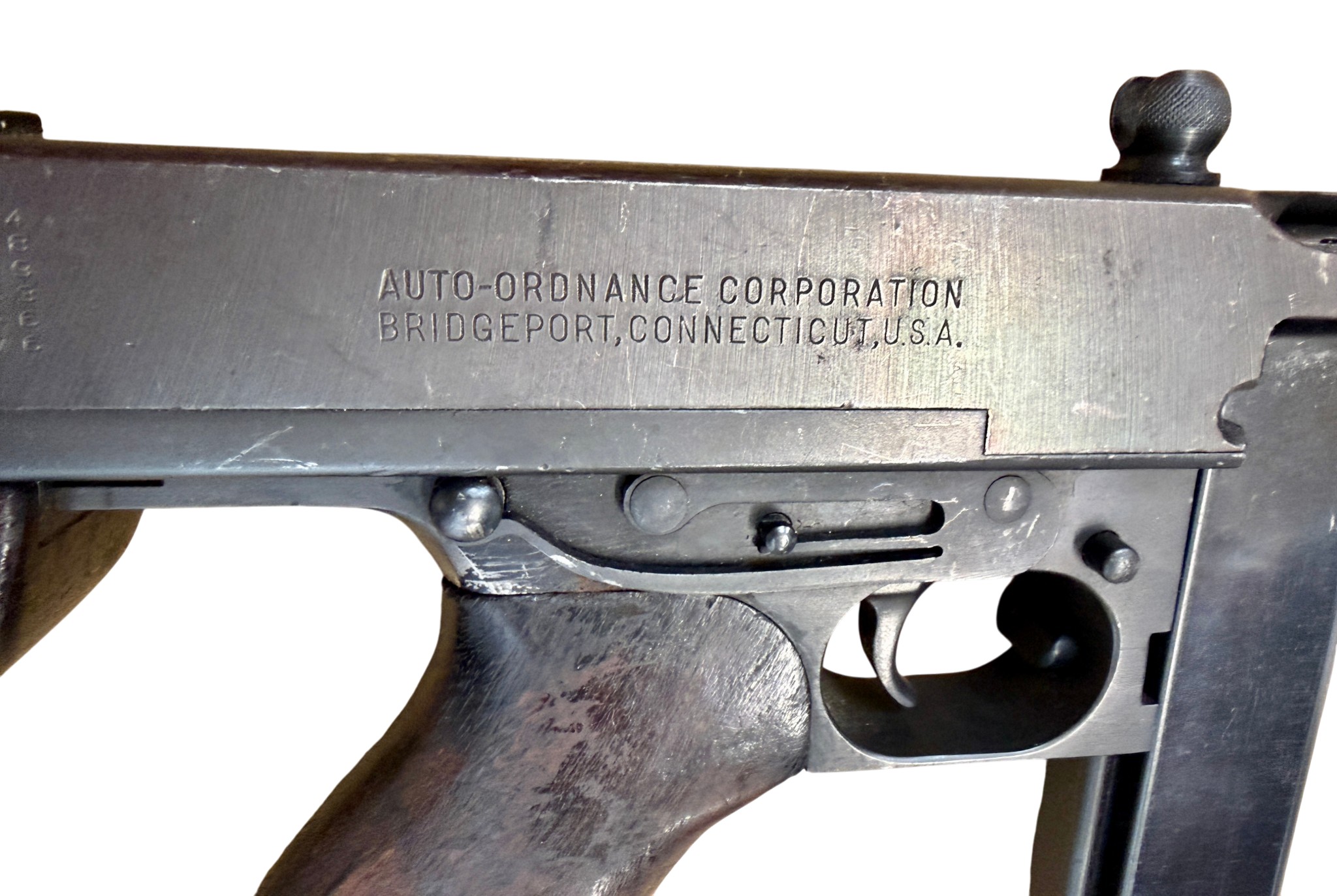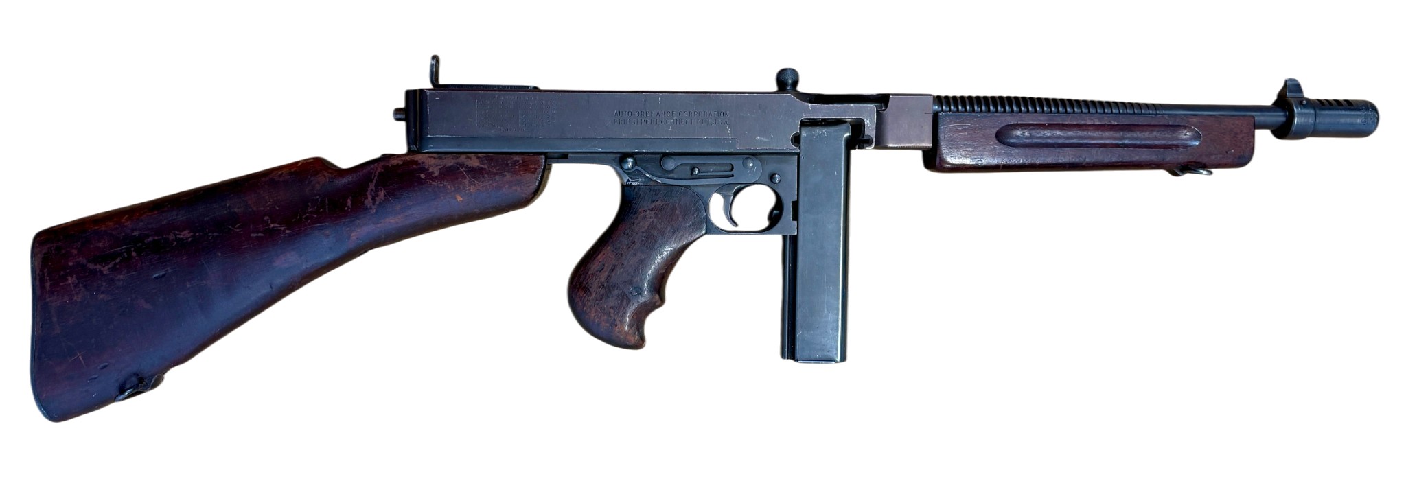 A deactivated American Thompson Sub Machine Gun, calibre .45'', barrel length 32cm, serial number 404098. With deactivation certificate.