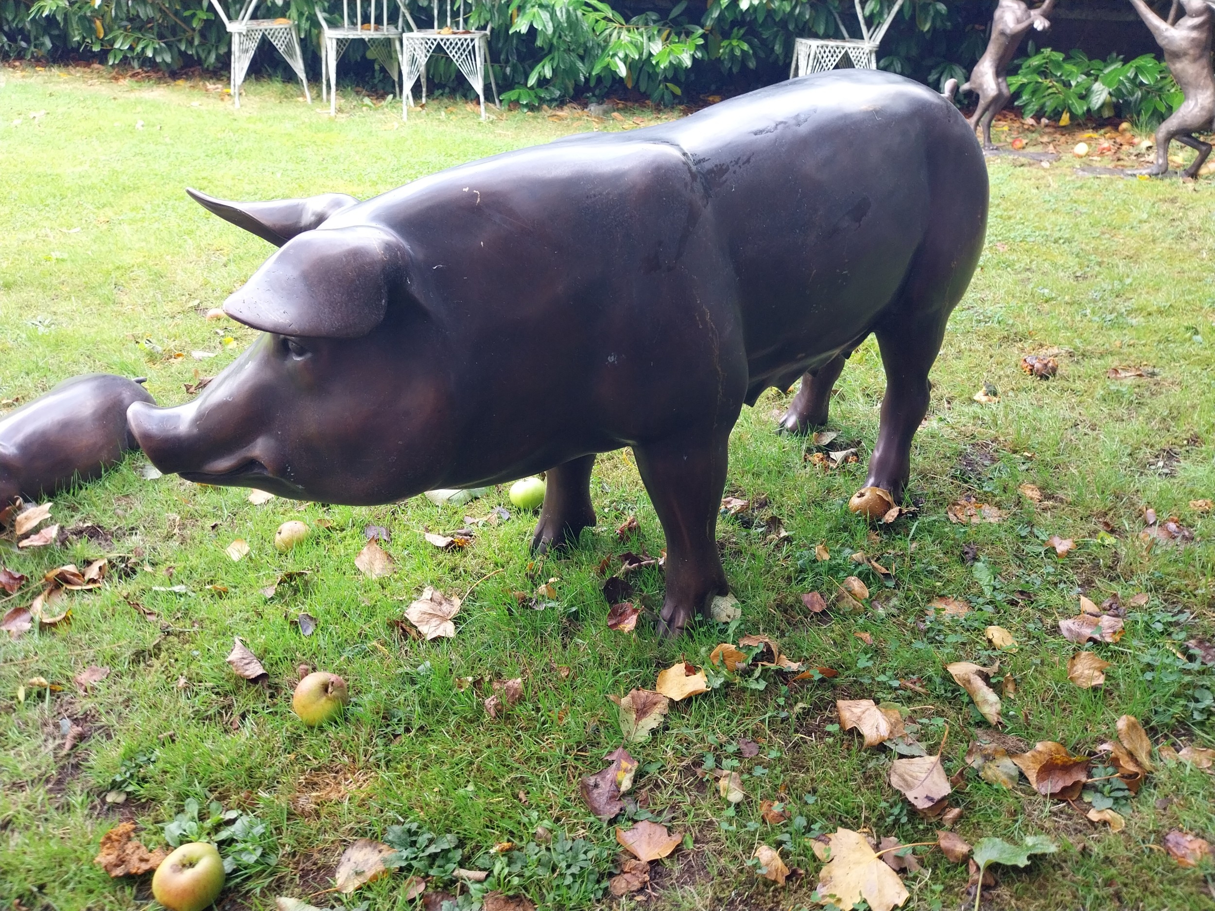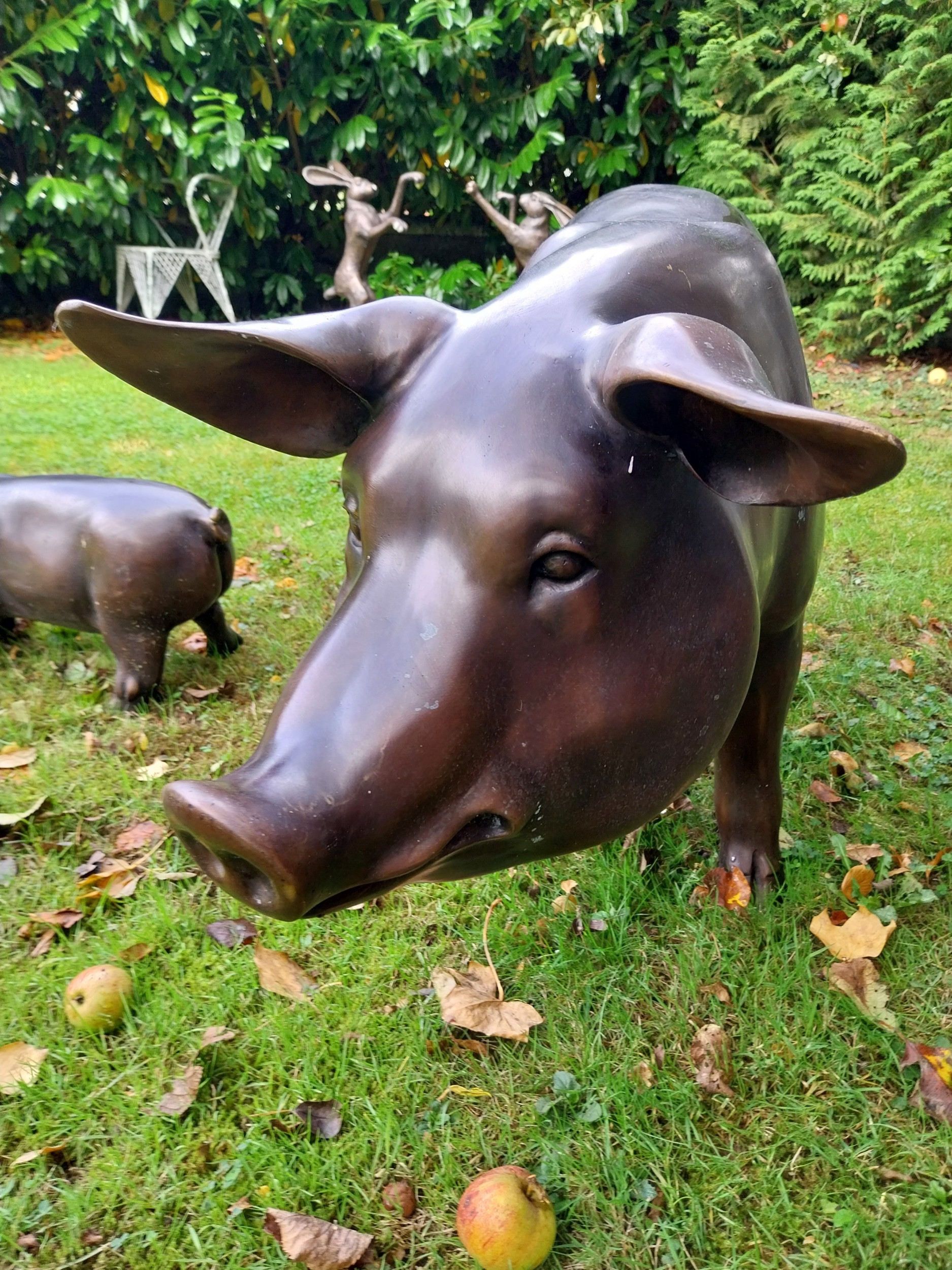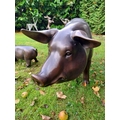 Good quality bronze sculpture of a female Pig. { 56cm H X 130cm W X 35cm D }.