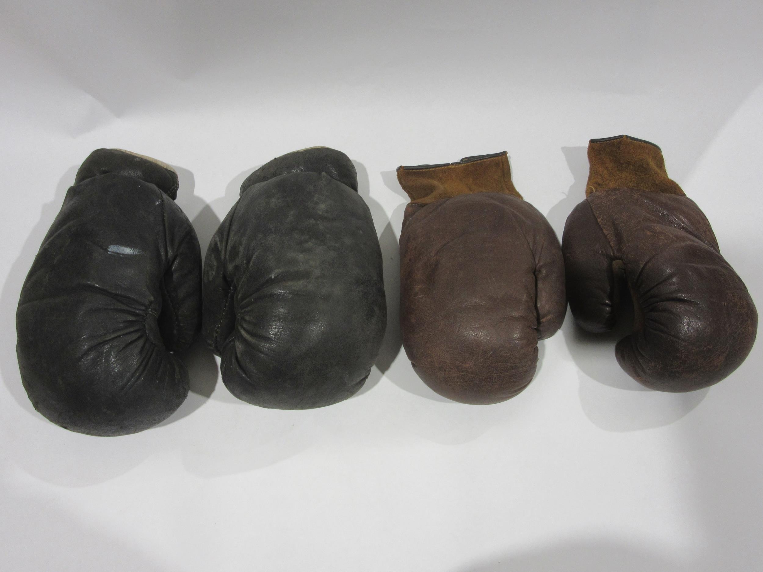 Two pairs of vintage leather boxing gloves, one pair by Frank Bryan