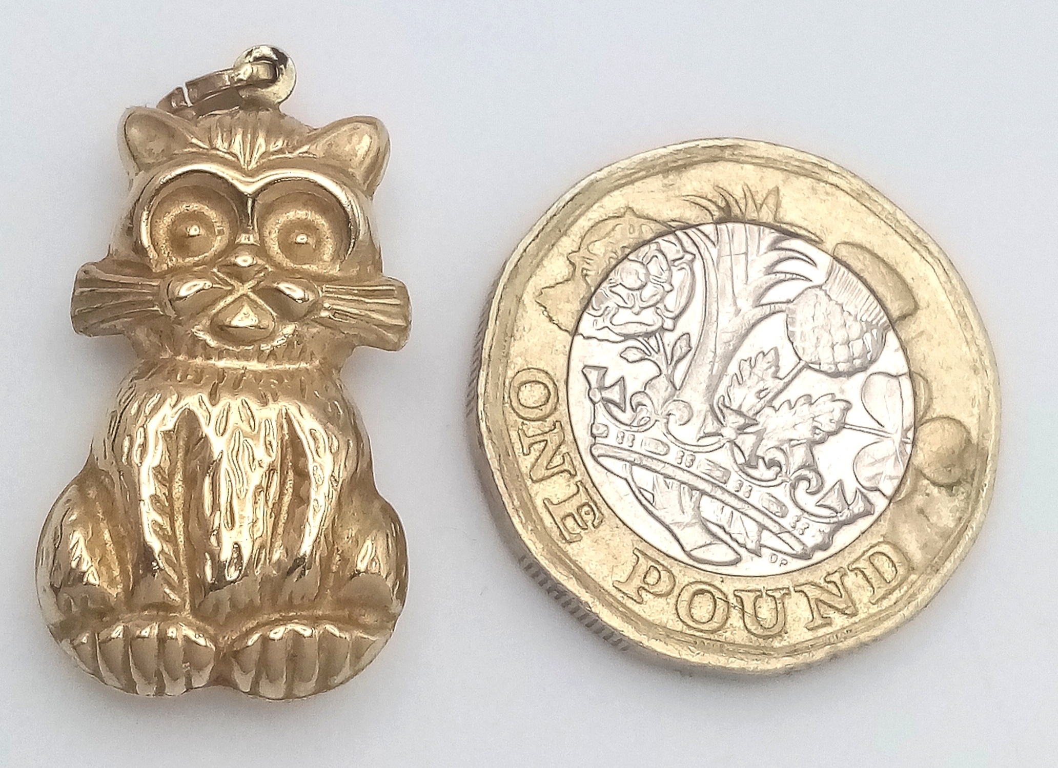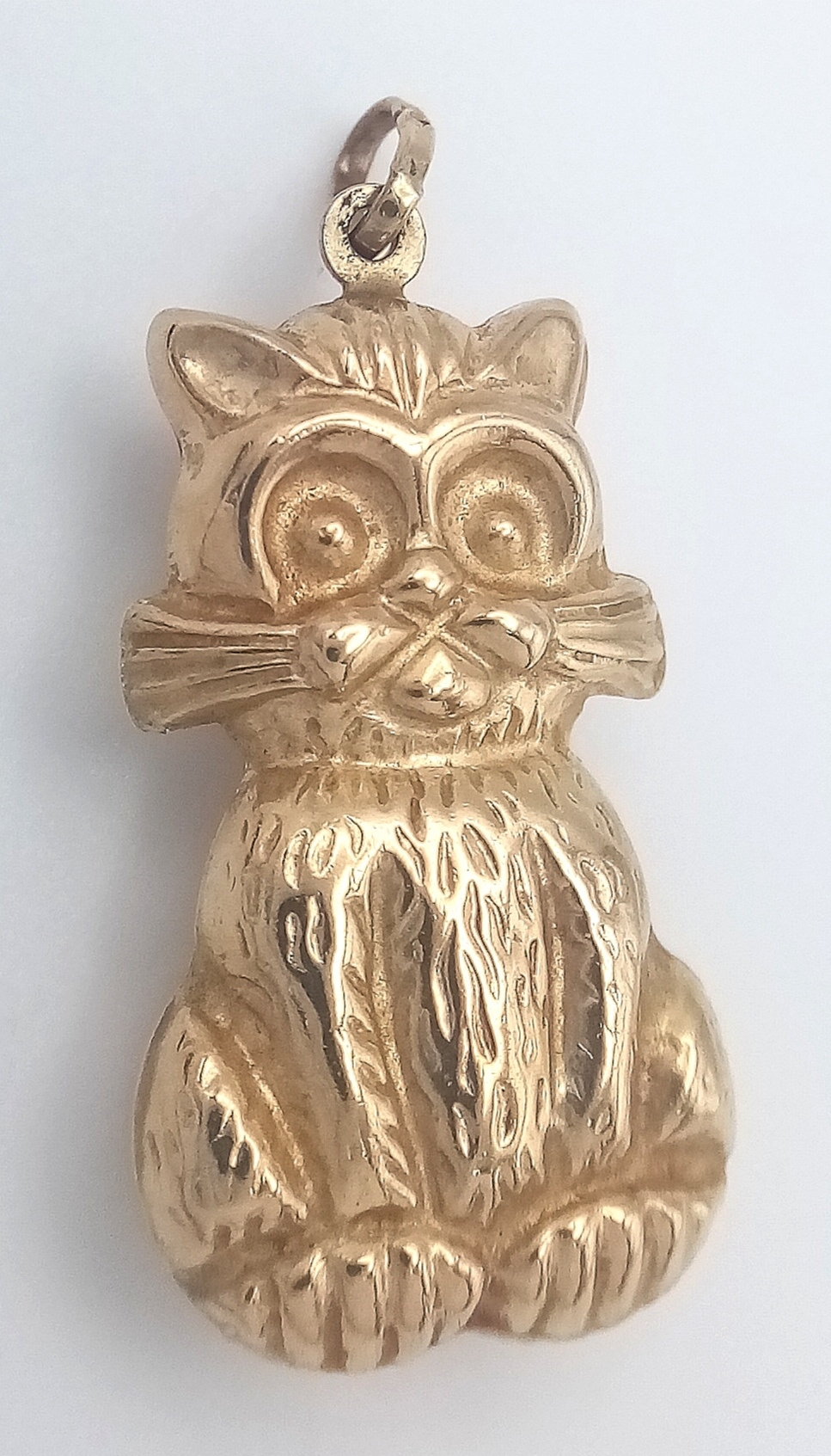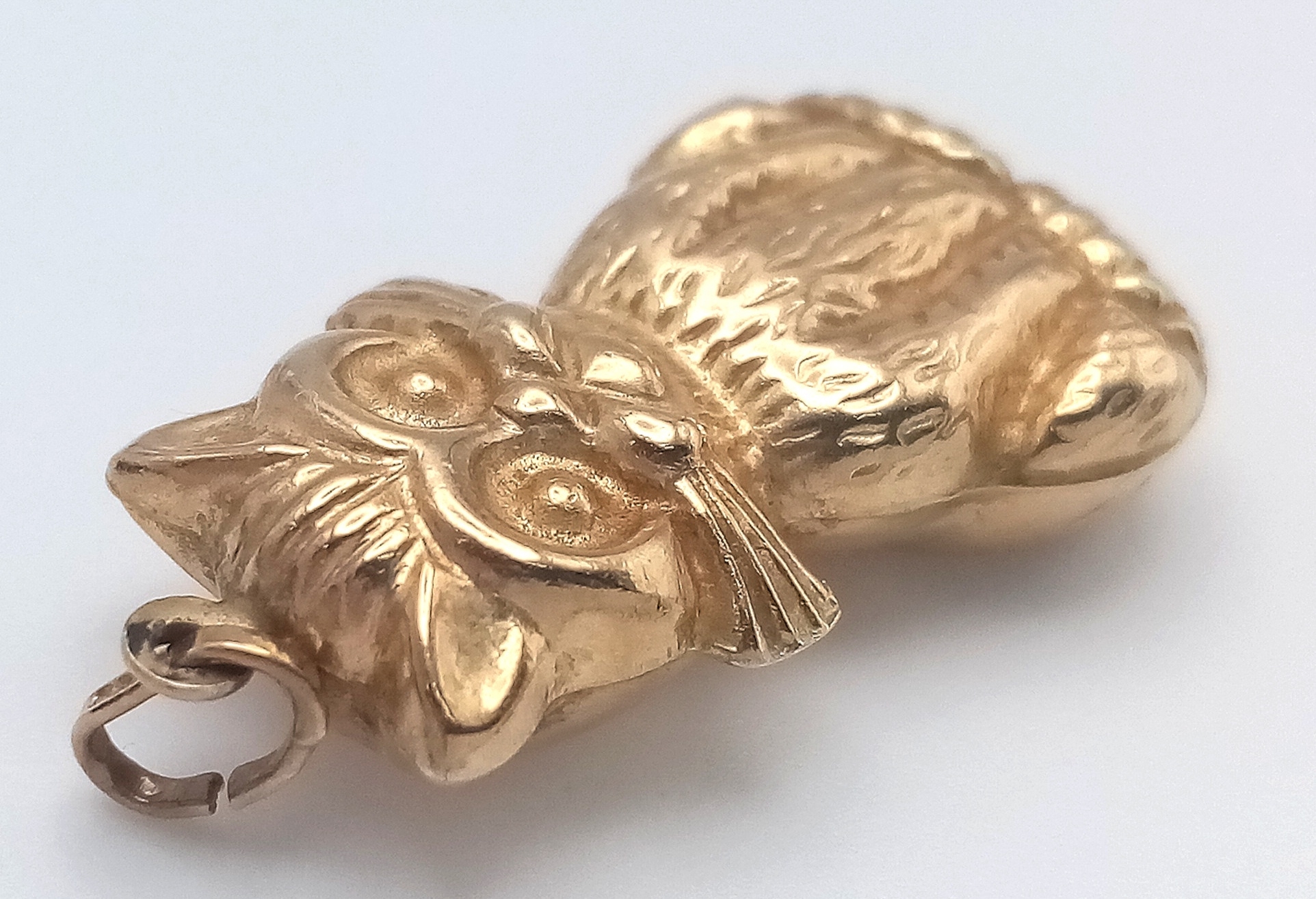 Delightful 9 CARAT YELLOW GOLD PUSSYCAT PENDANT. Fully hallmarked. 1.62 grams. 3 cm drop. Please see pictures.