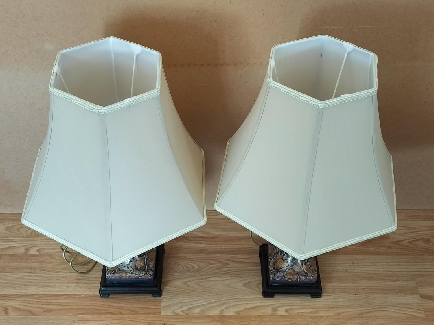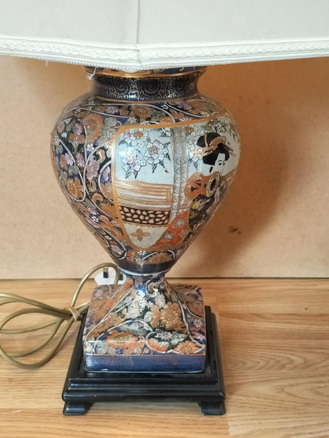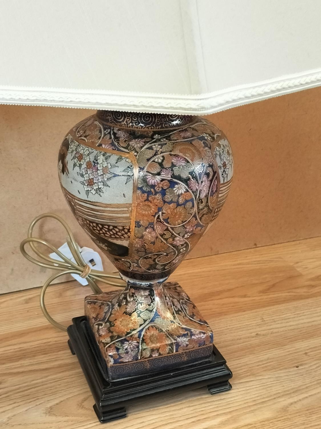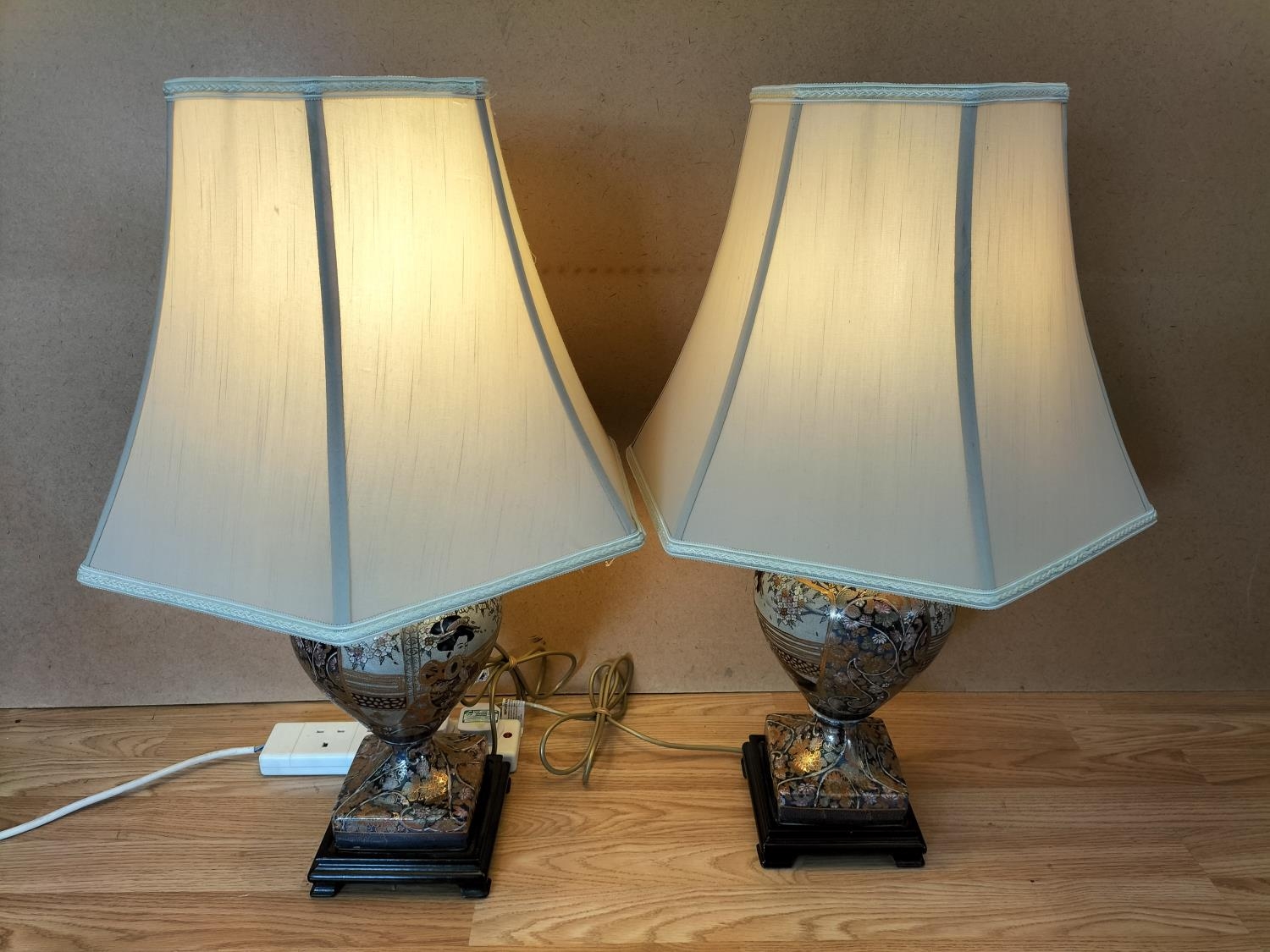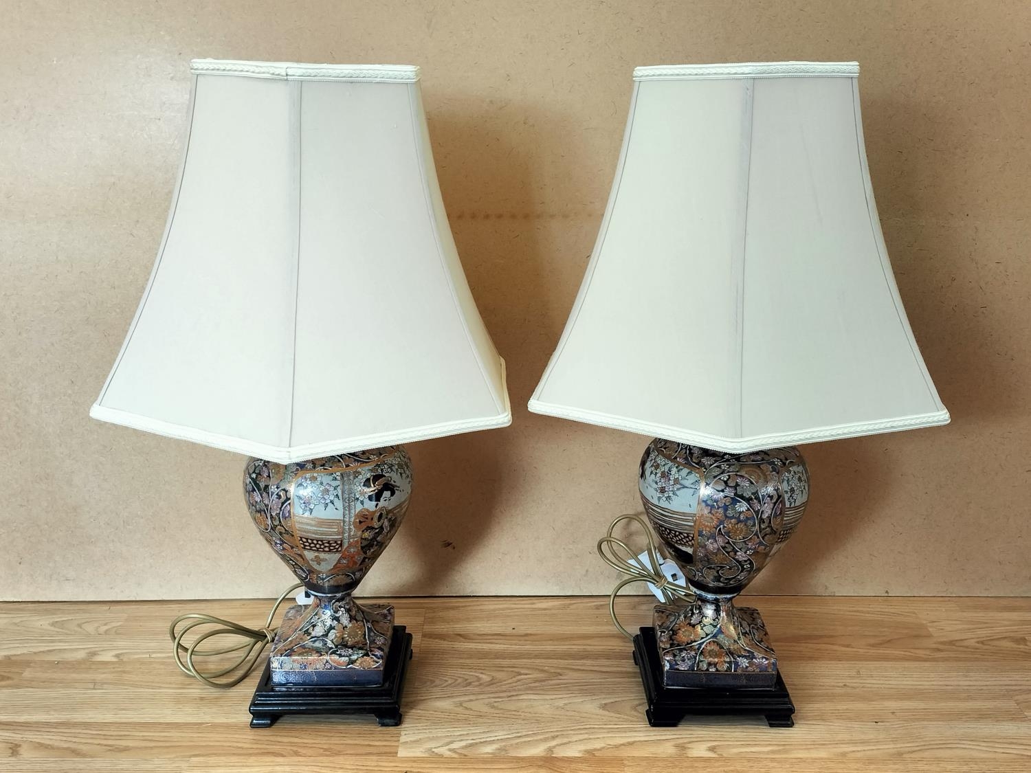 Pair of Large Oriental Lamps with Shades W/O. 69cm Tall.