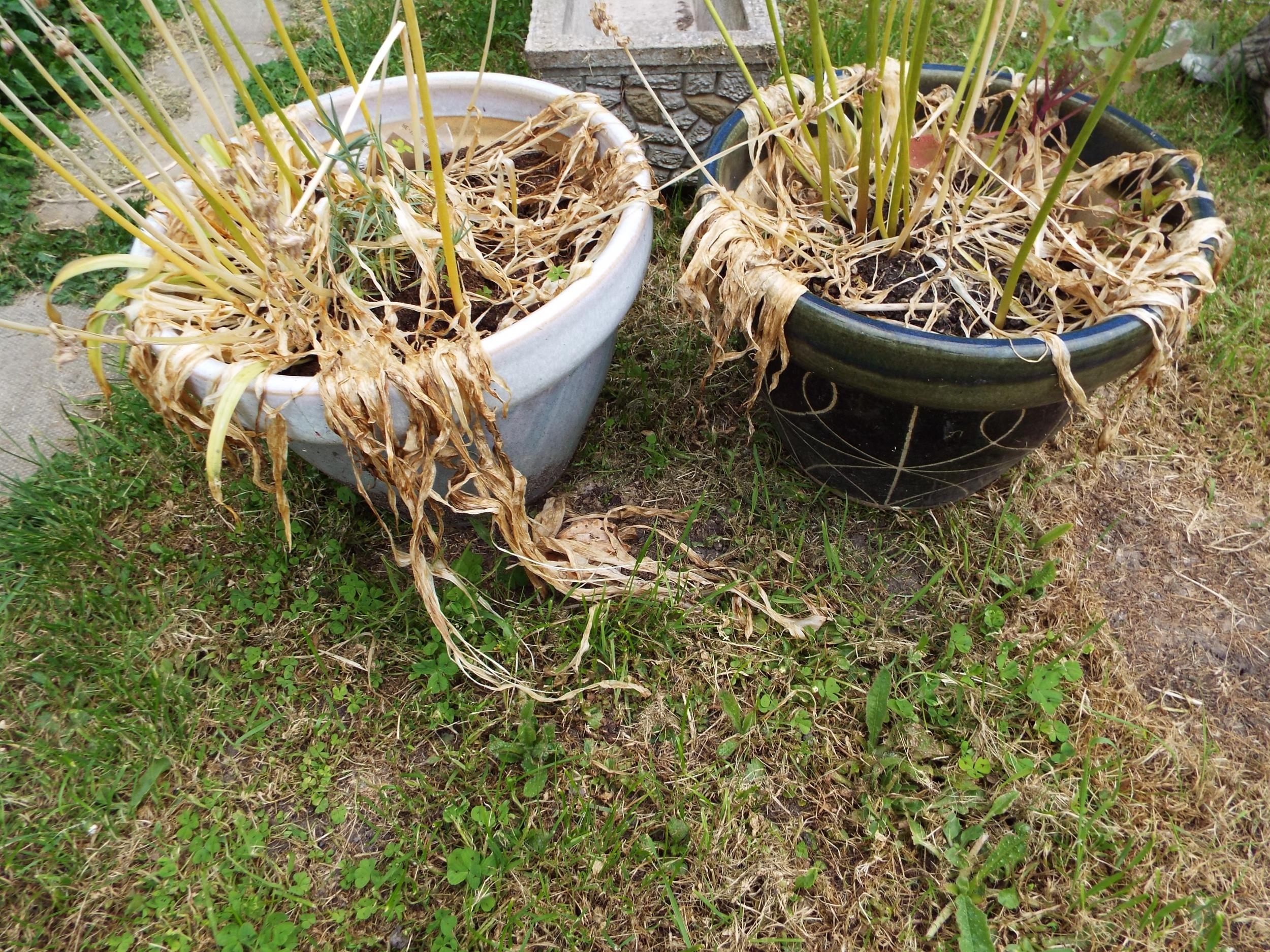 A pair of glazed garden pots
