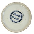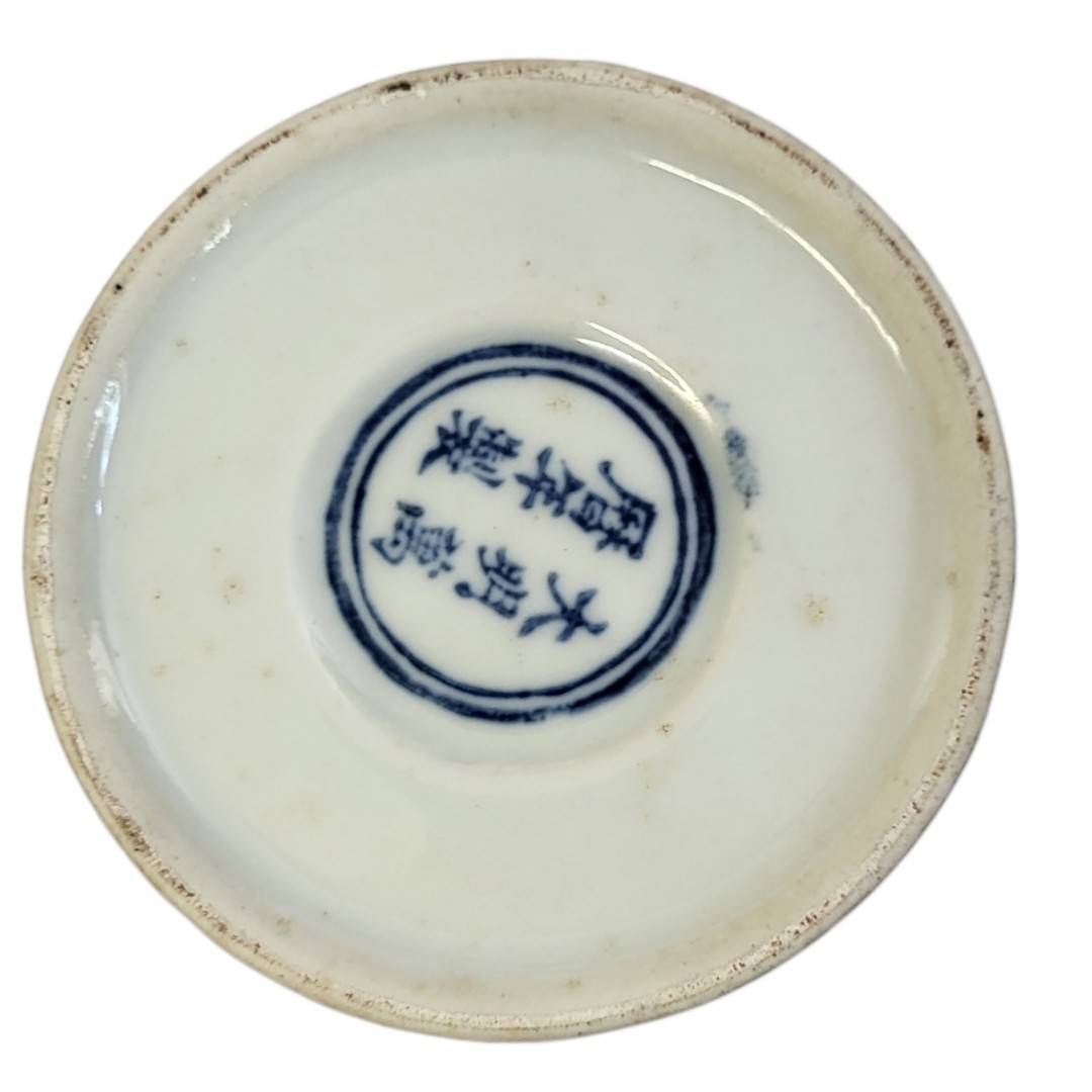having a flared rim ,decorated with four dragons within cartouche panels, bearing six character mark to reverse.