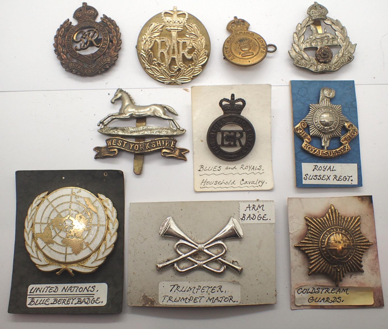 Ten WW1 and later British cap badges. P&P Group 1 (£14+VAT for the first lot and £1+VAT for subsequent lots)