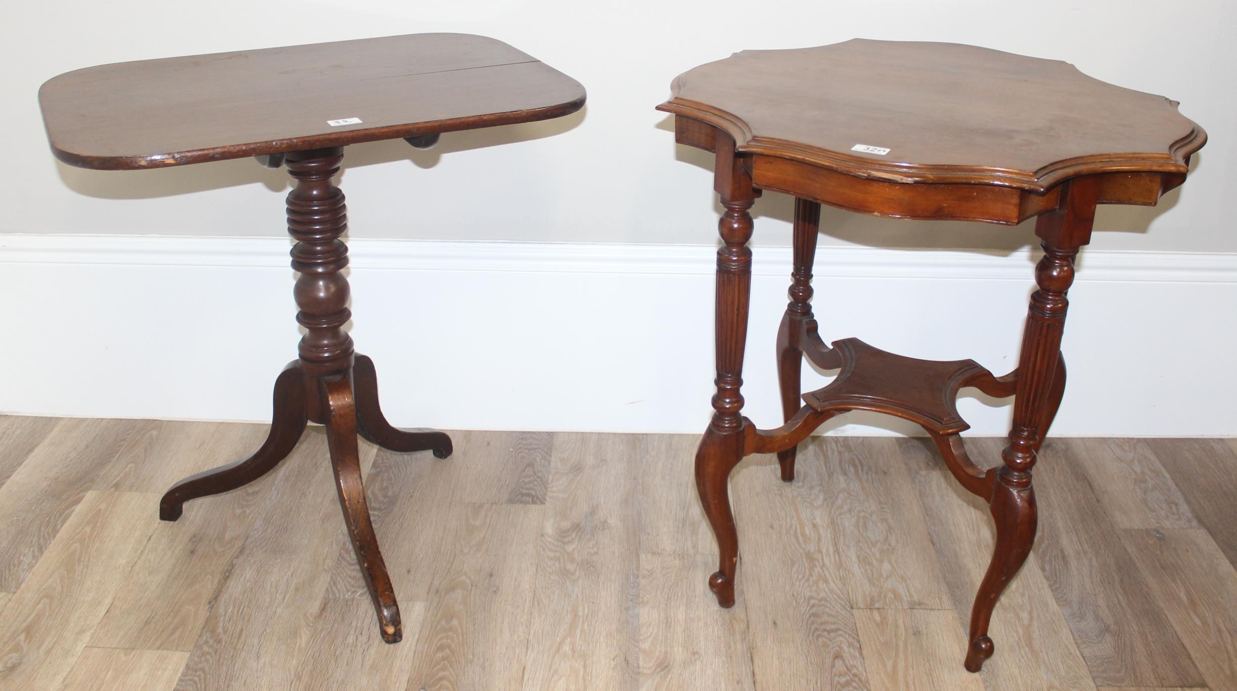 Antique mahogany occasional table with shaped top, approx 68 x 68 x 73cm tall and a 19th century mahogany tilt-top table with tripod base, approx 68cm wide x 48cm deep x 70cm tall (2)