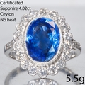 Rich and vibrant deep blue sapphire of 4.02 ct. (Certificated, Ceylon, no Heat).