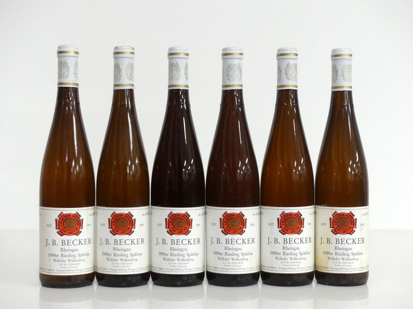 6 bts J. B. Becker Rheingau Riesling Spätlese Wallufer Walkenberg 1989 sl stl