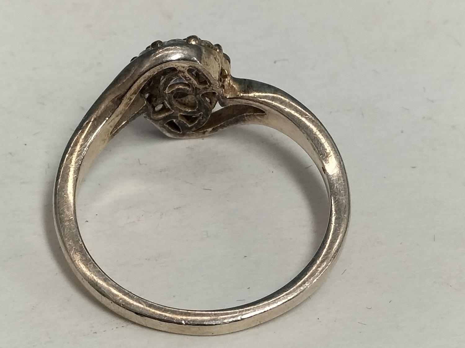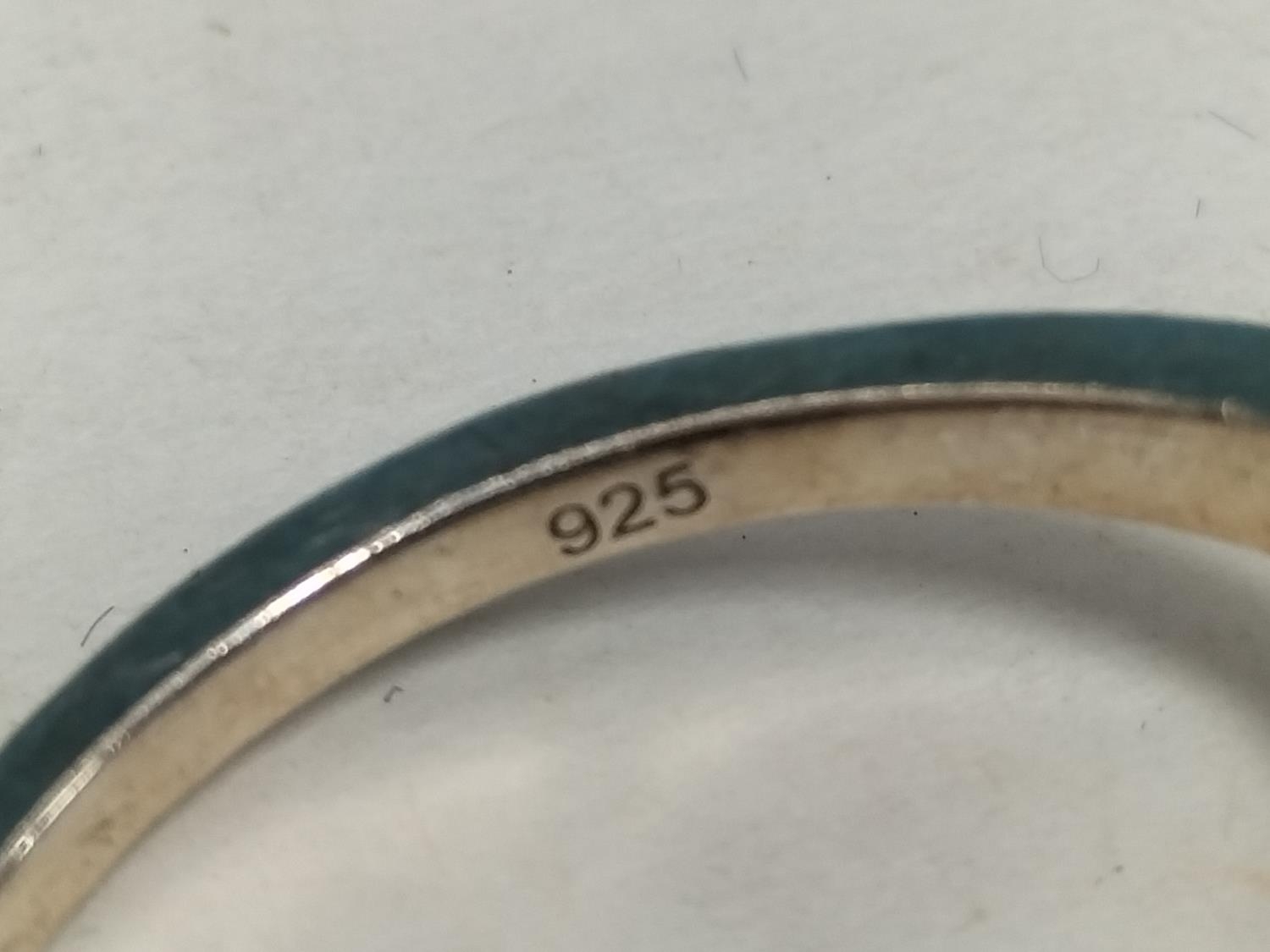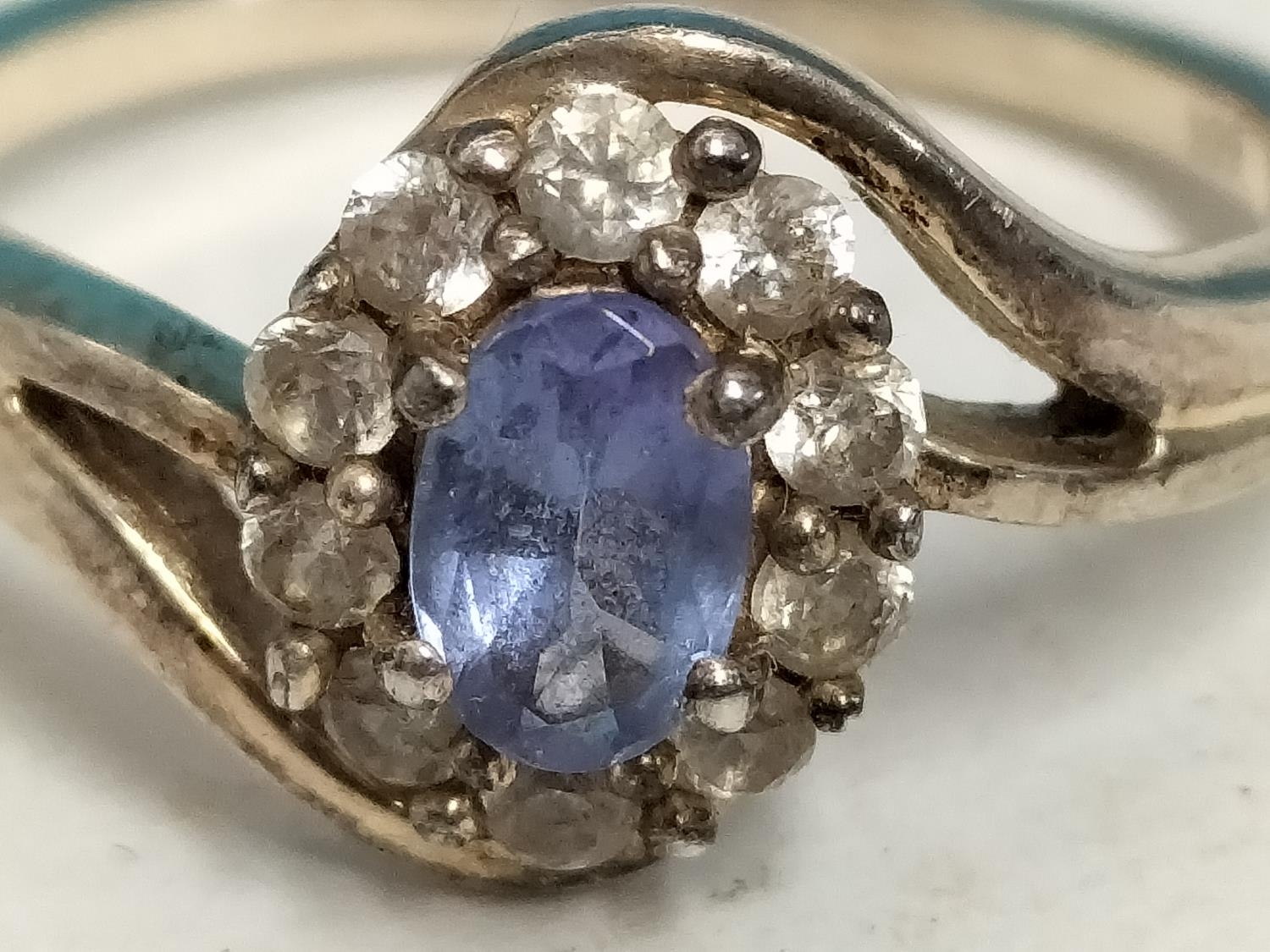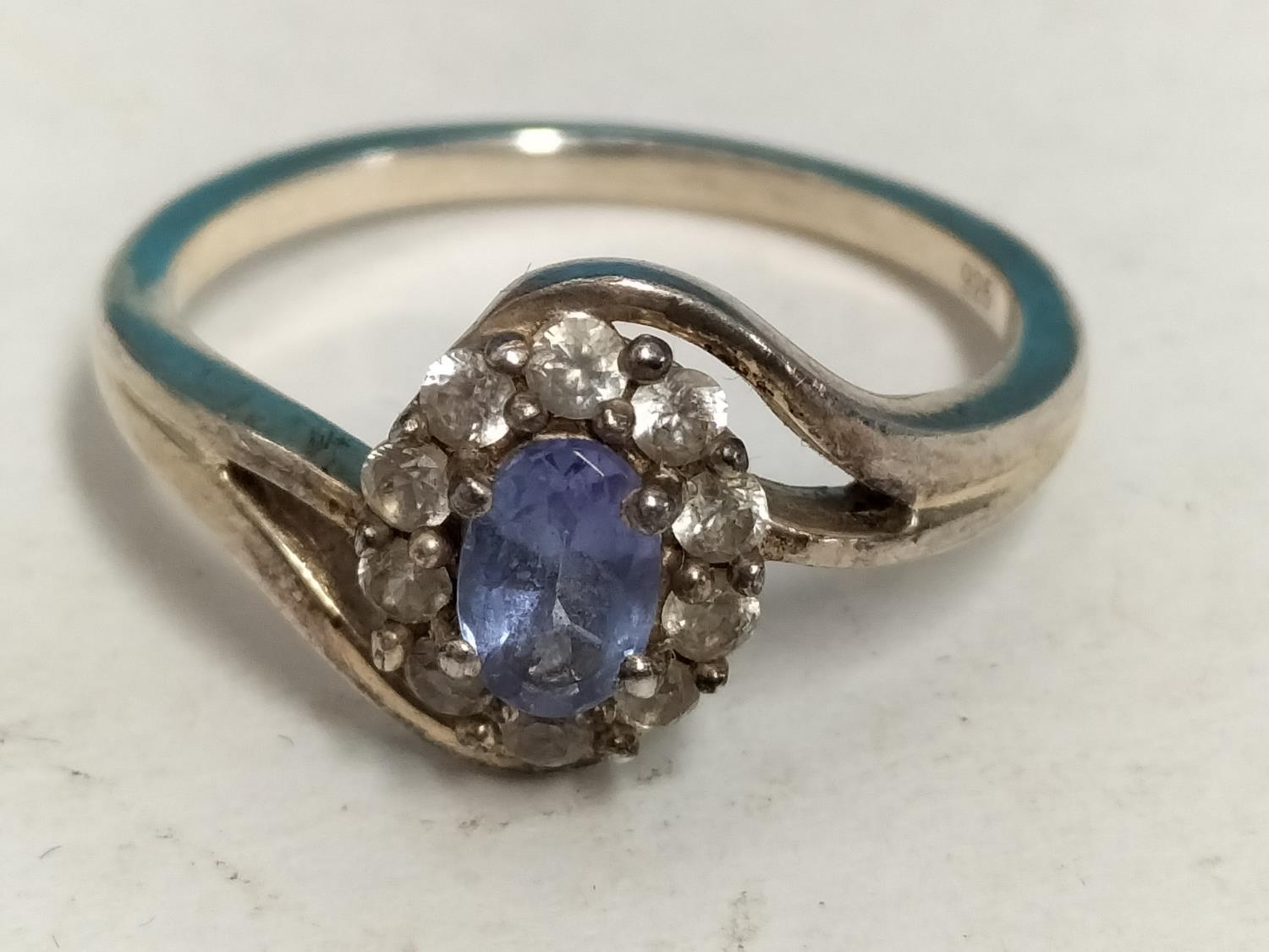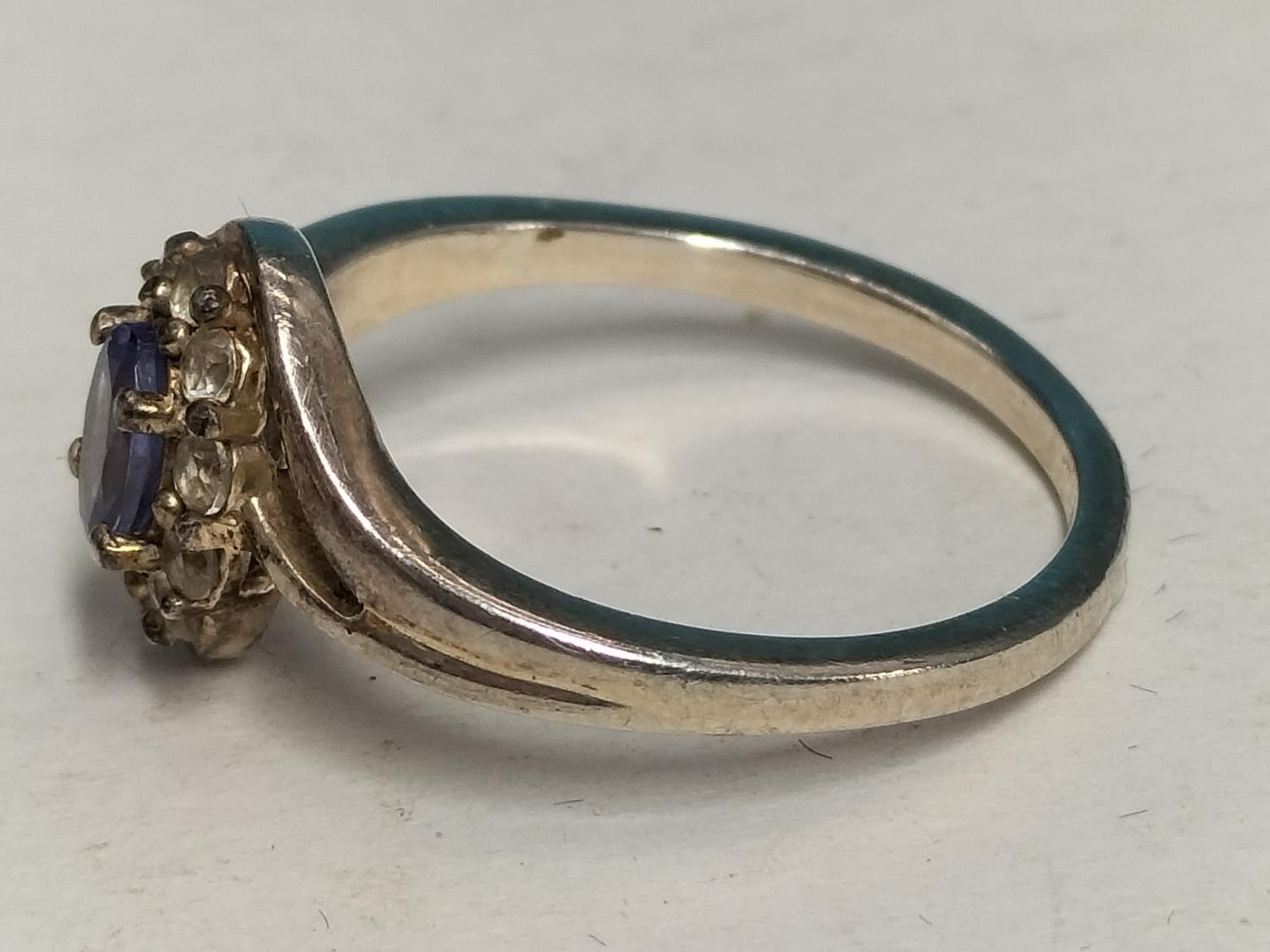 Silver 925, Blue Stone and Cubic Zirconia Design Ring. Size R.