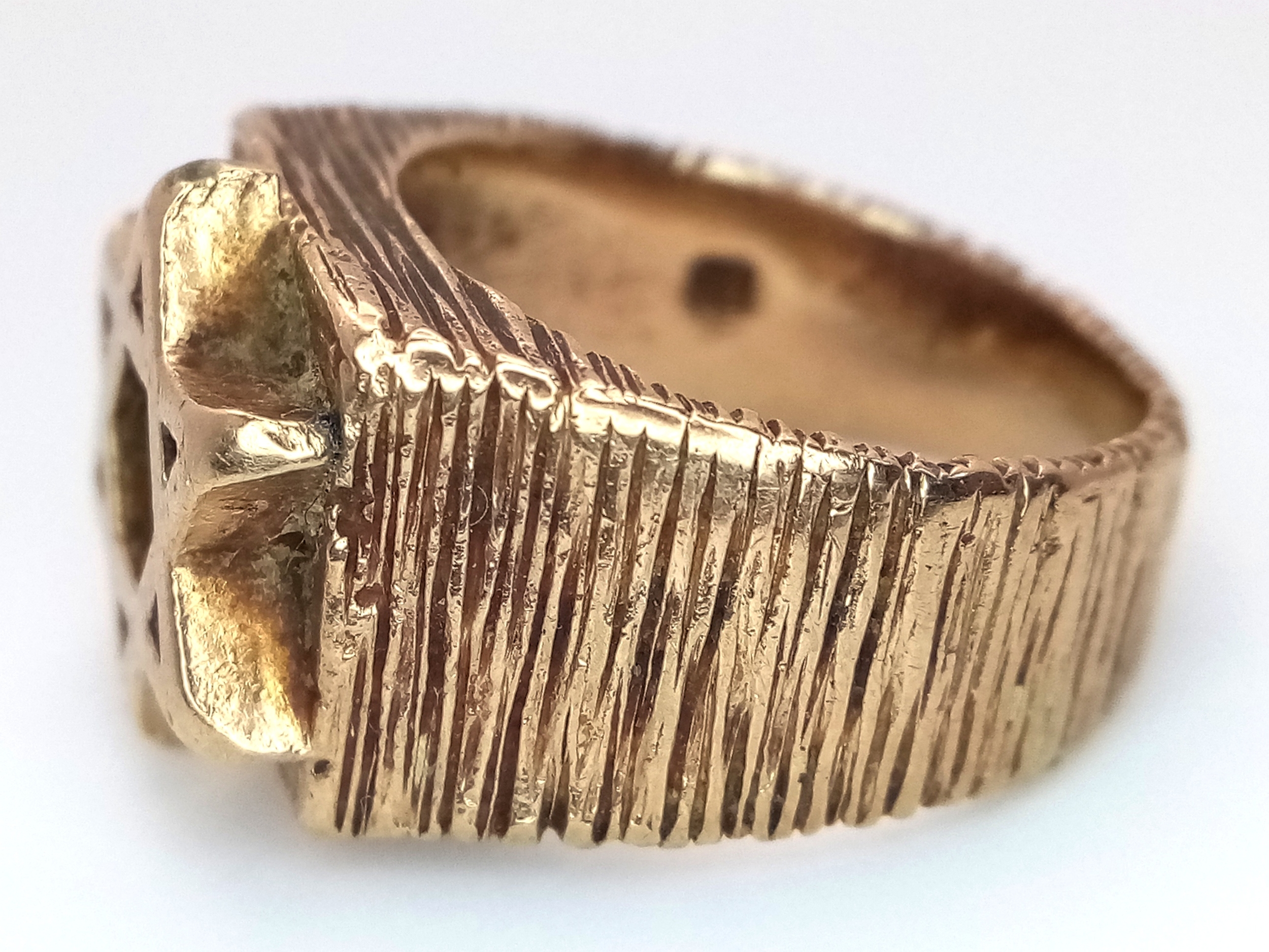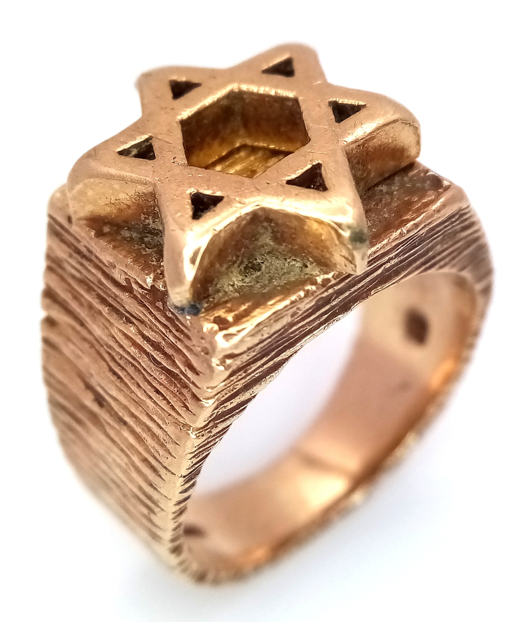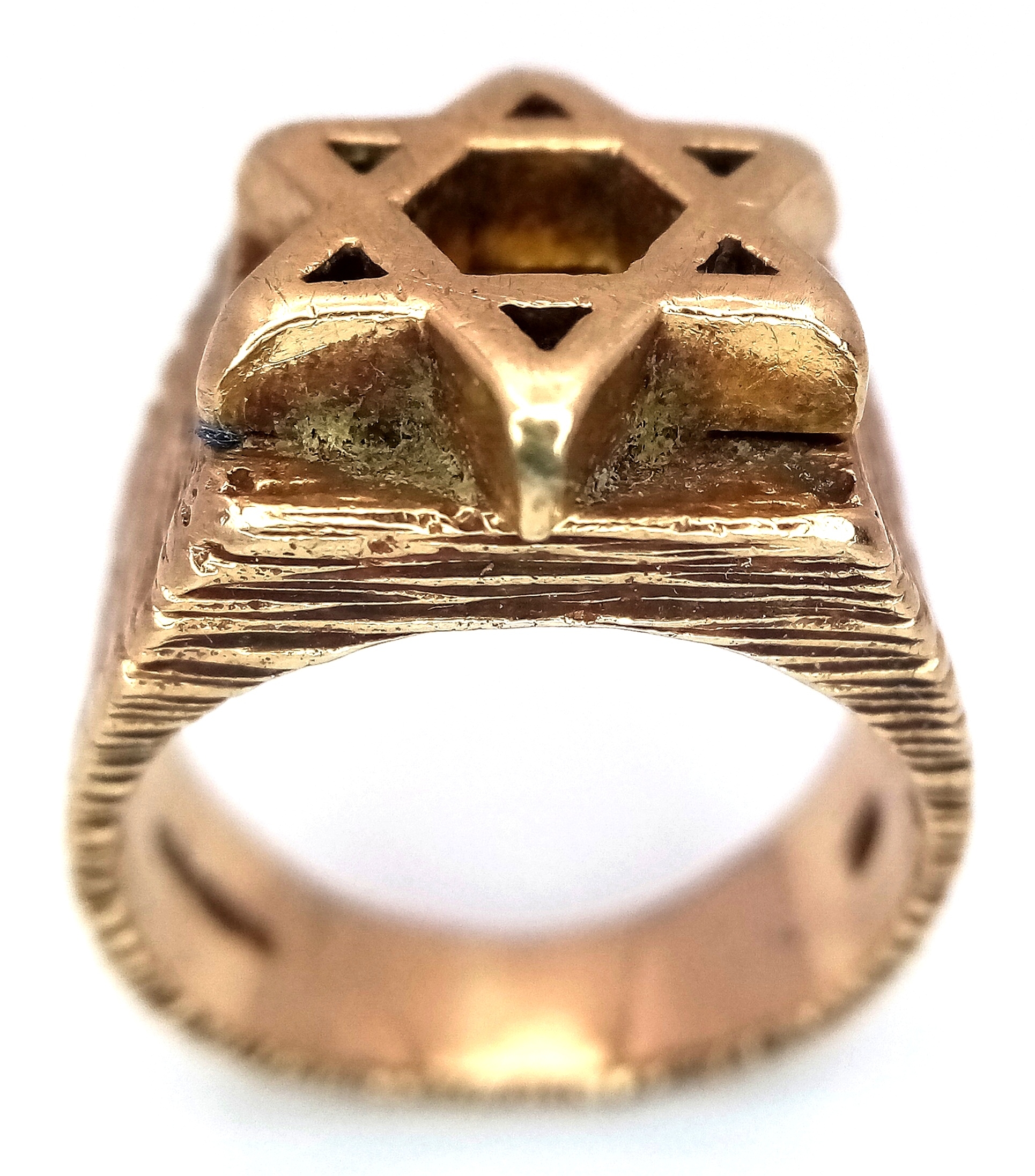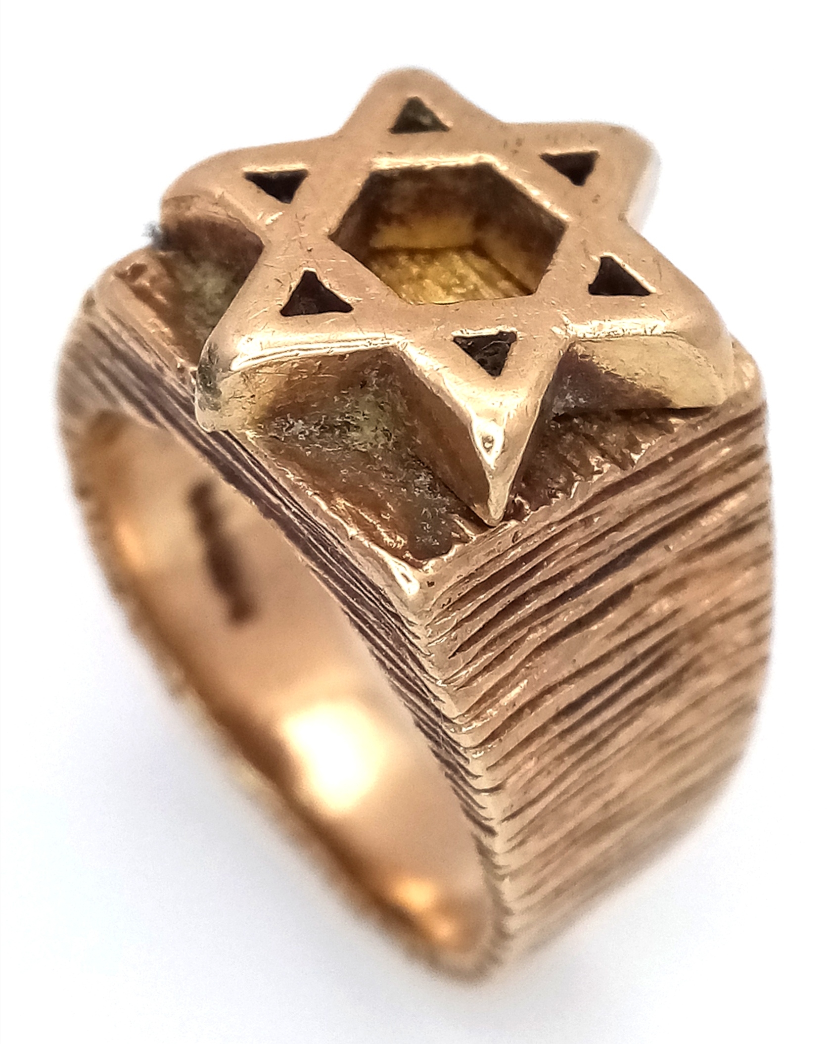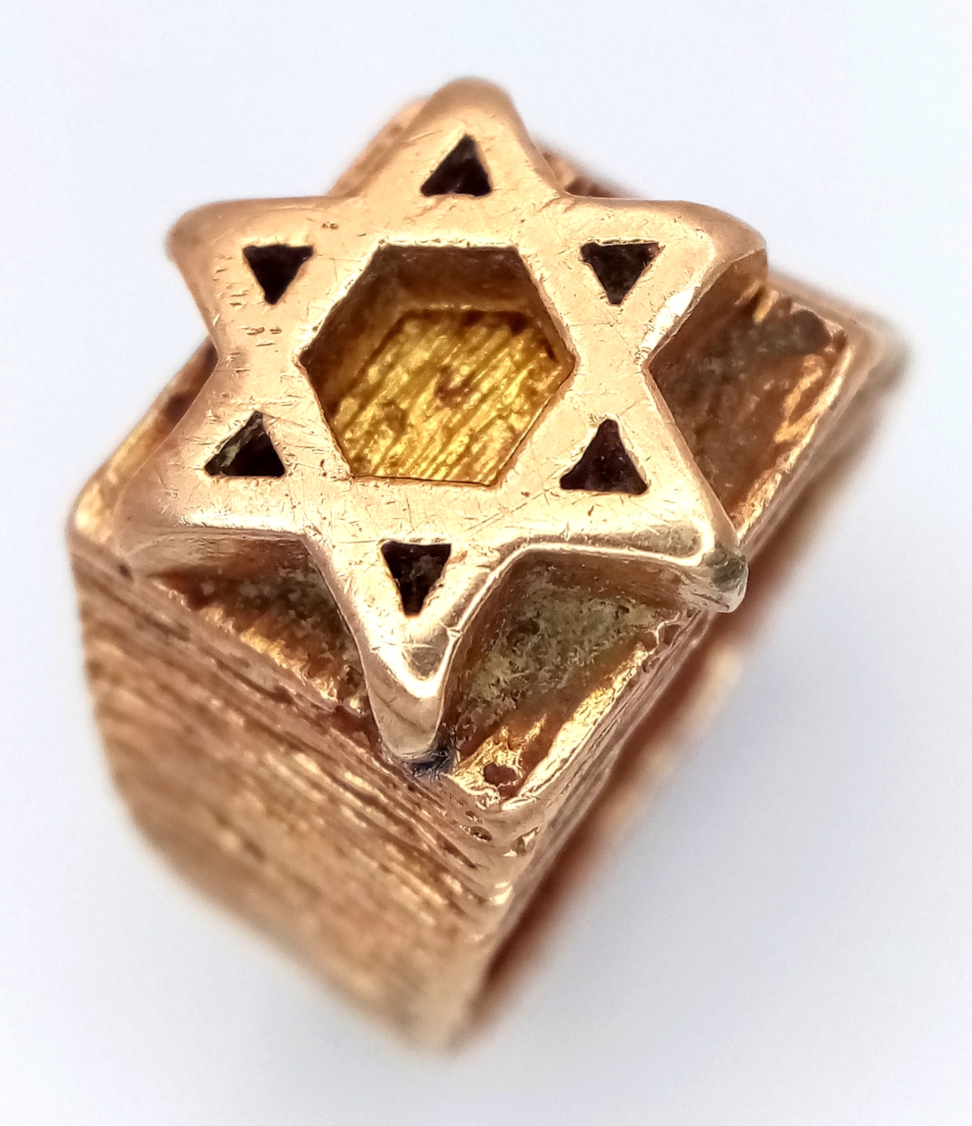 A 9K Gold Ornate Star of David Signet Ring. Size M 1/2. 11.5g.