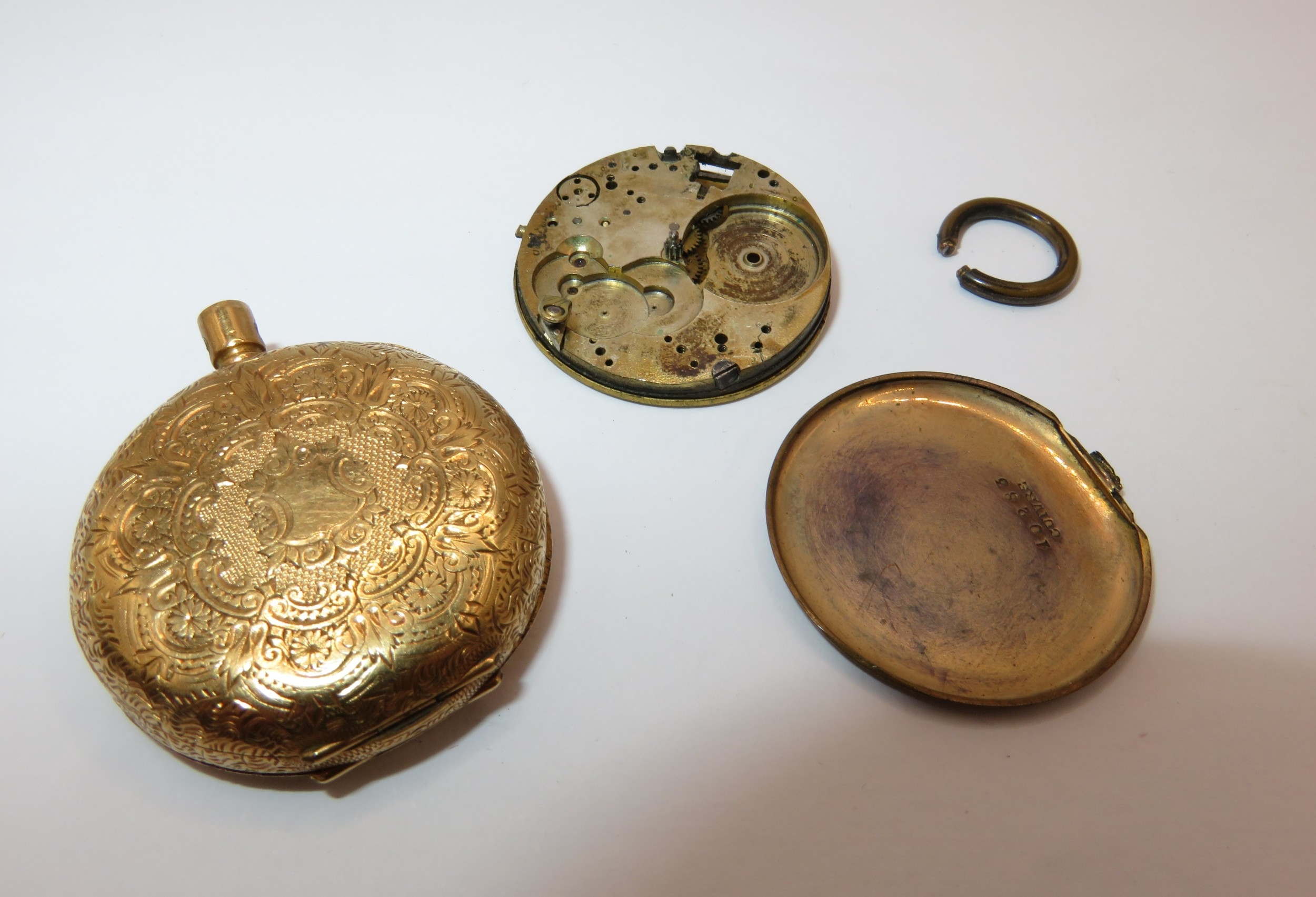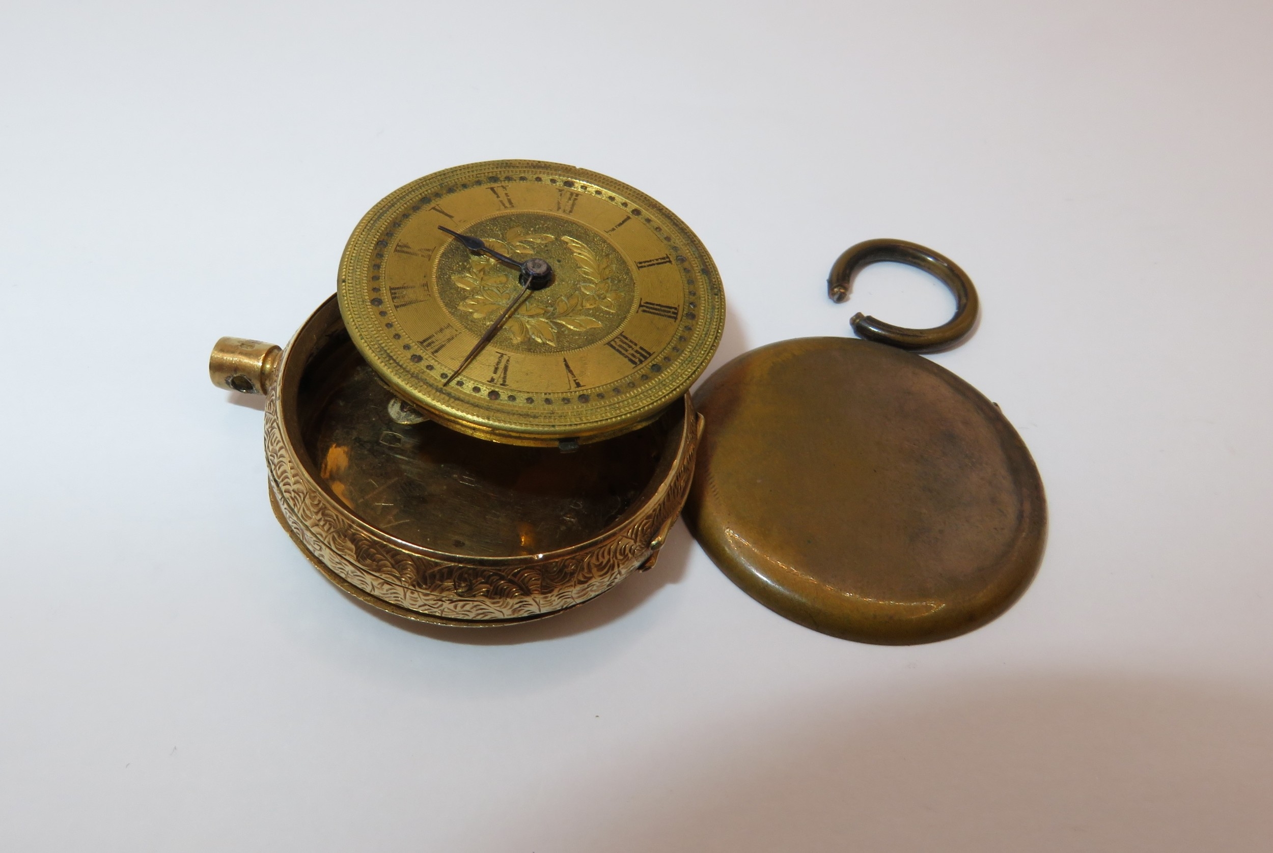 Continental 18ct gold cased fob watch, case weight 5.8g, gross weight 17g (at fault)