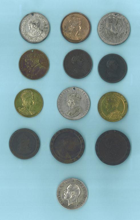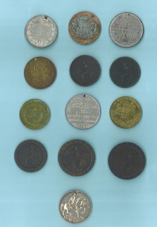 Collection of Georgian and later coins, commemorative and other tokens and a World War I British military War medal marked 27365 PTE.P.PAUL.WORC.R. to the rim