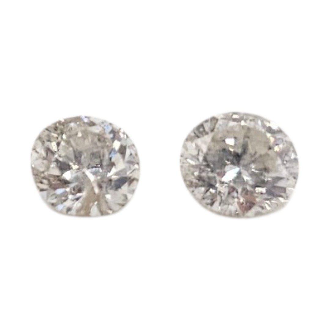 A NEAR PAIR OF 3/4CT ROUND BRILLIANT CUT LOOSE DIAMONDS.