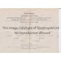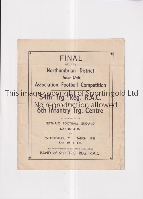 SERVICES FOOTBALL AT DARLINGTON F.C. 1946 Programme for 54th Trg. Reg. R.A.C. v 6th Infantry Trg. Centre 20/3/1946, slight horizontal crease. Generally good