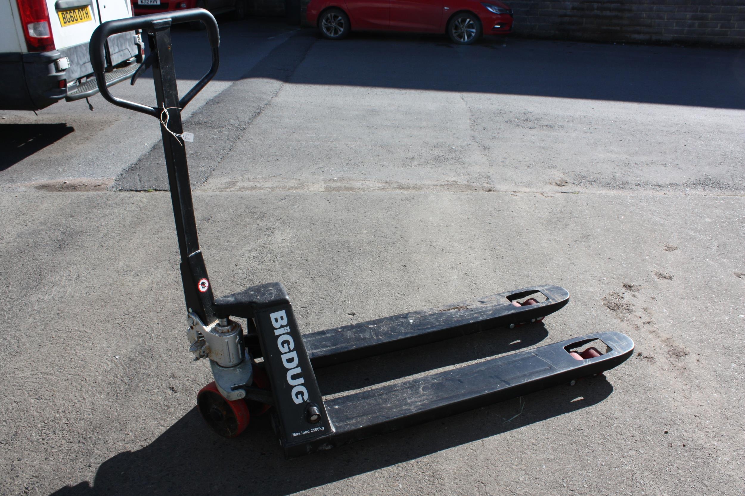 Set of Big Dug pallet trucks, forks are 45" long with payload of 2500 kg