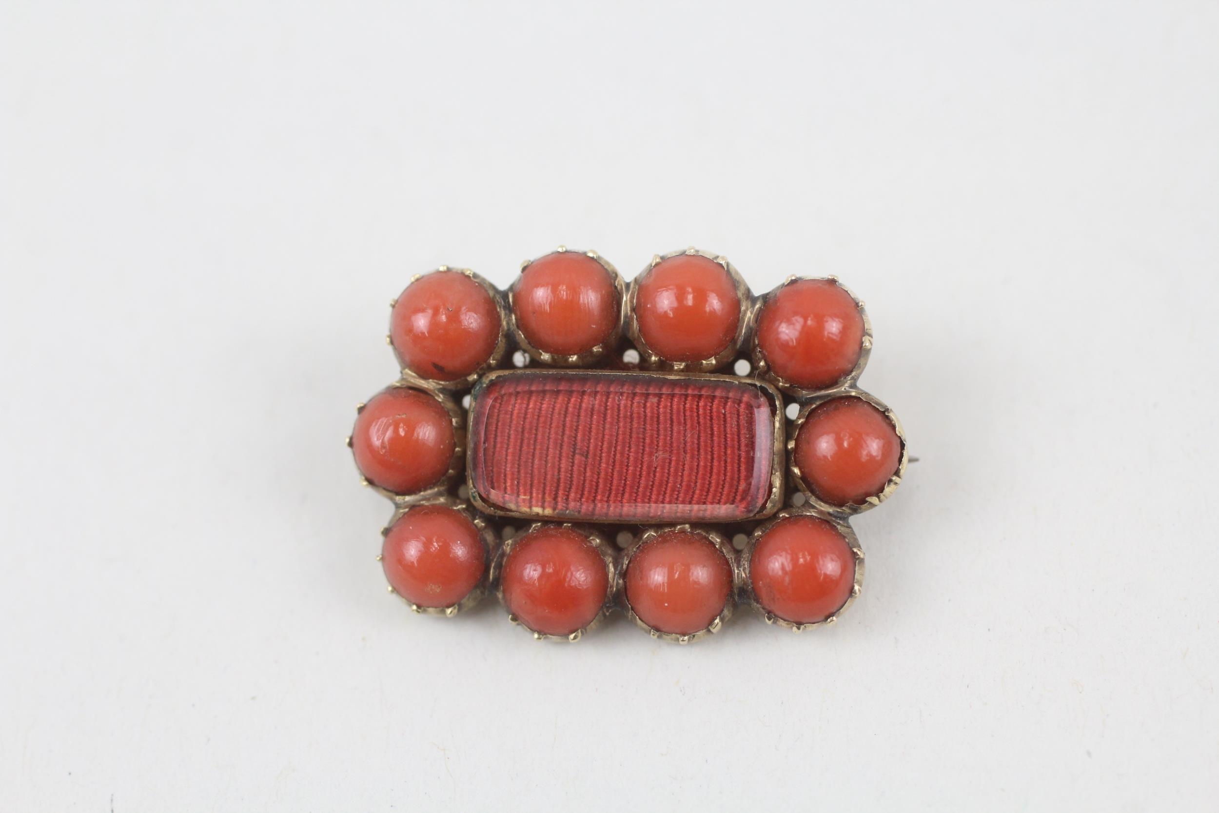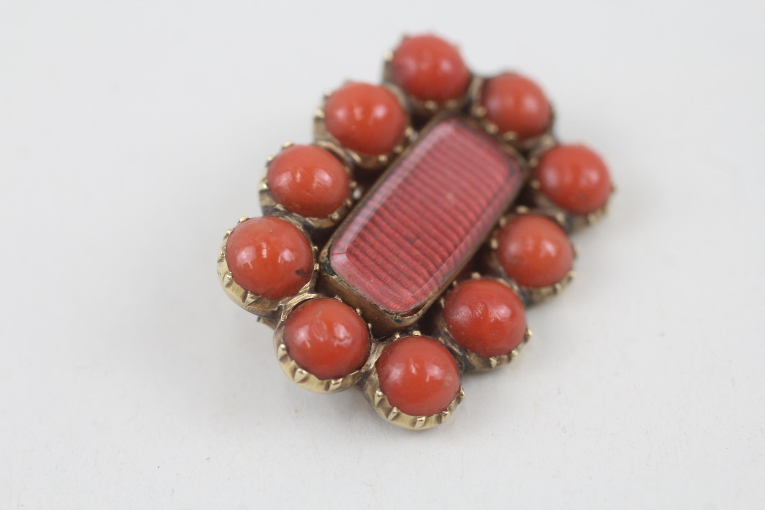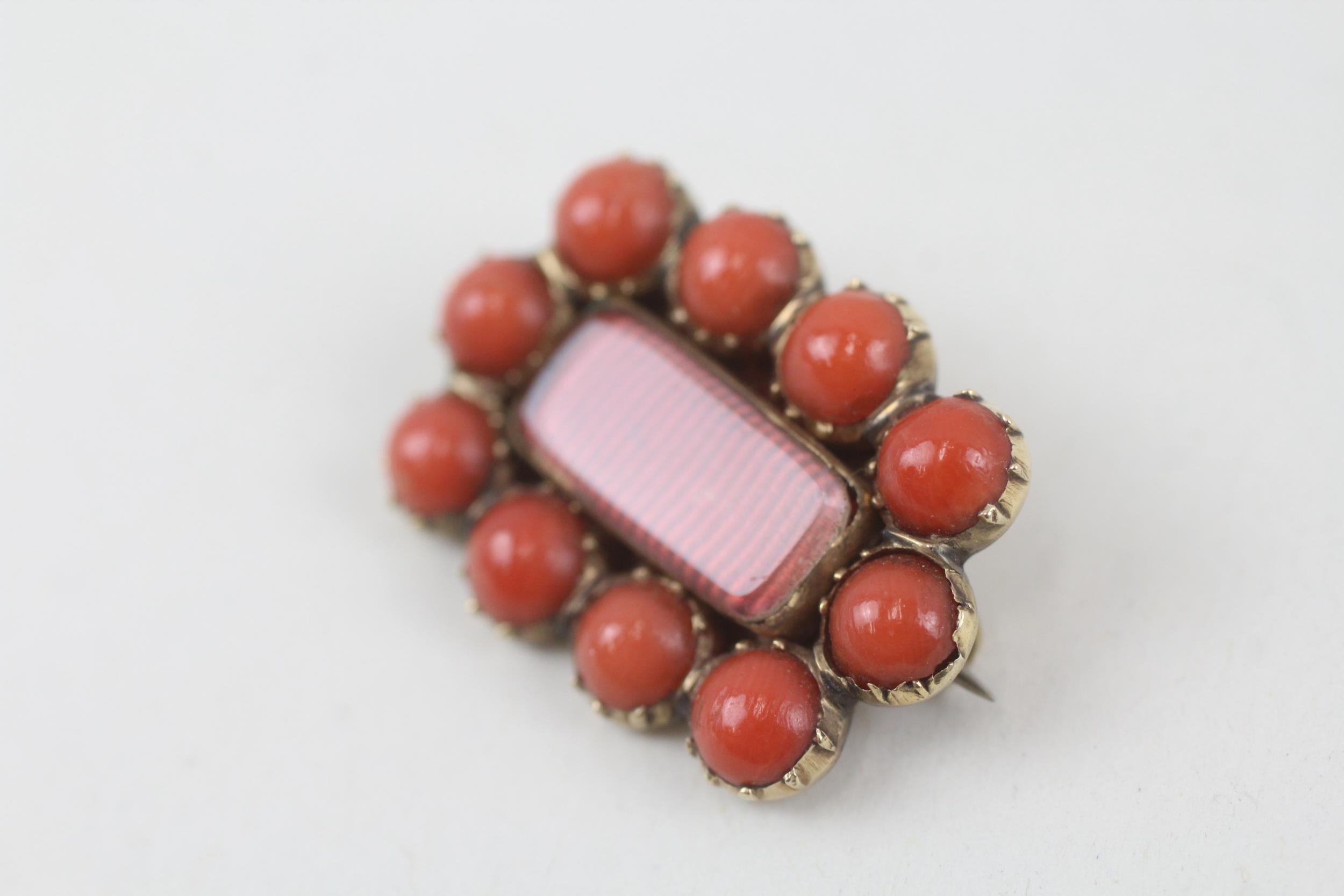 12ct gold antique coral brooch with base metal pin 4.6 g