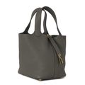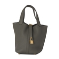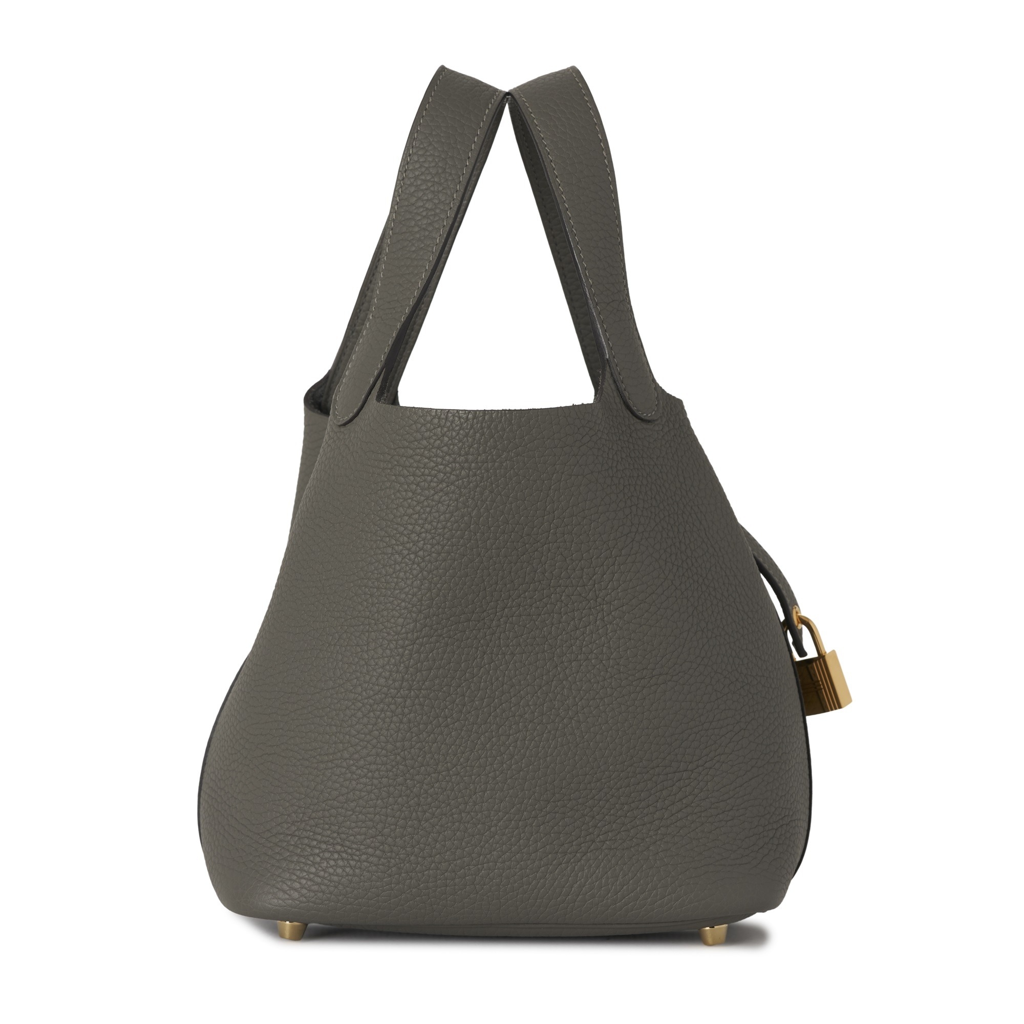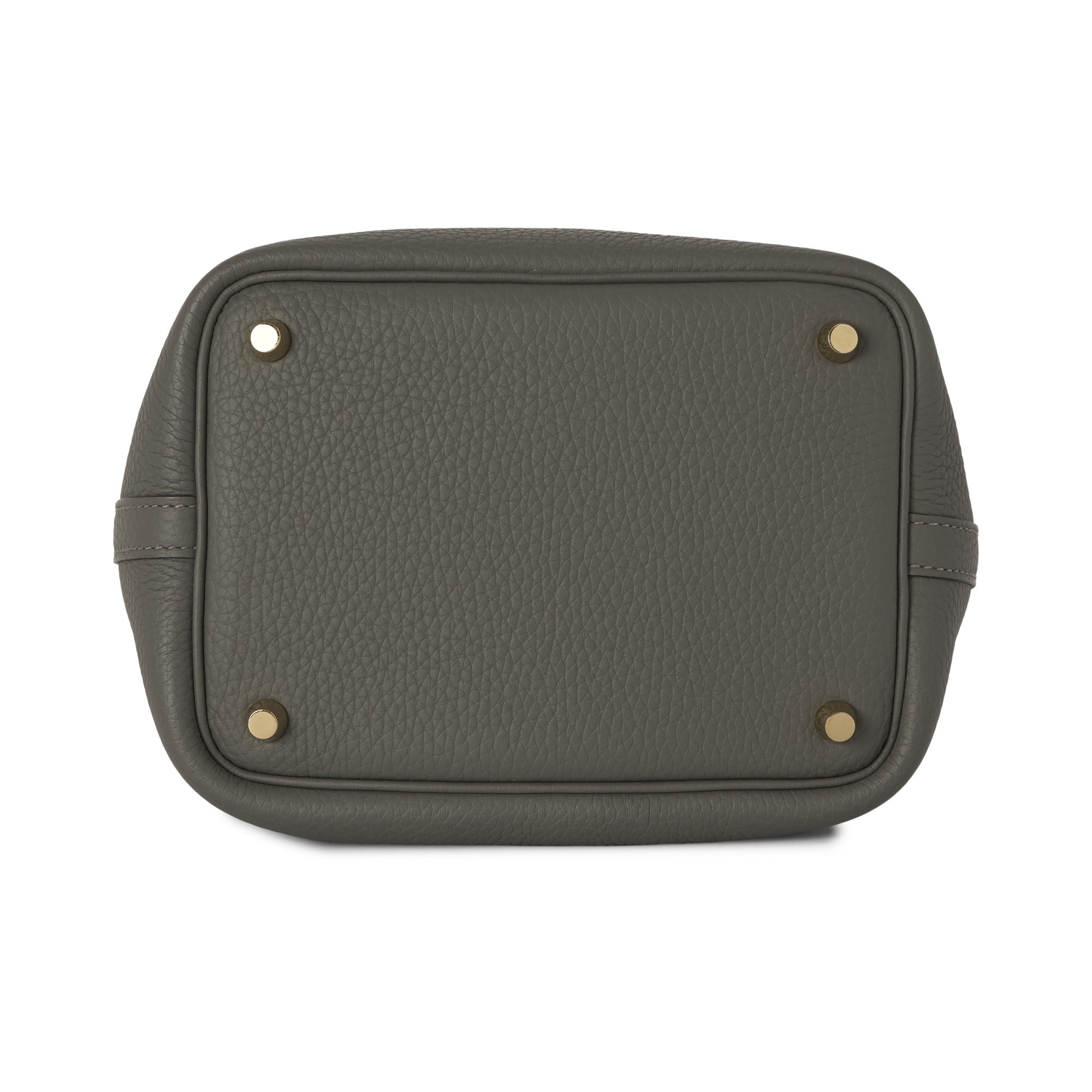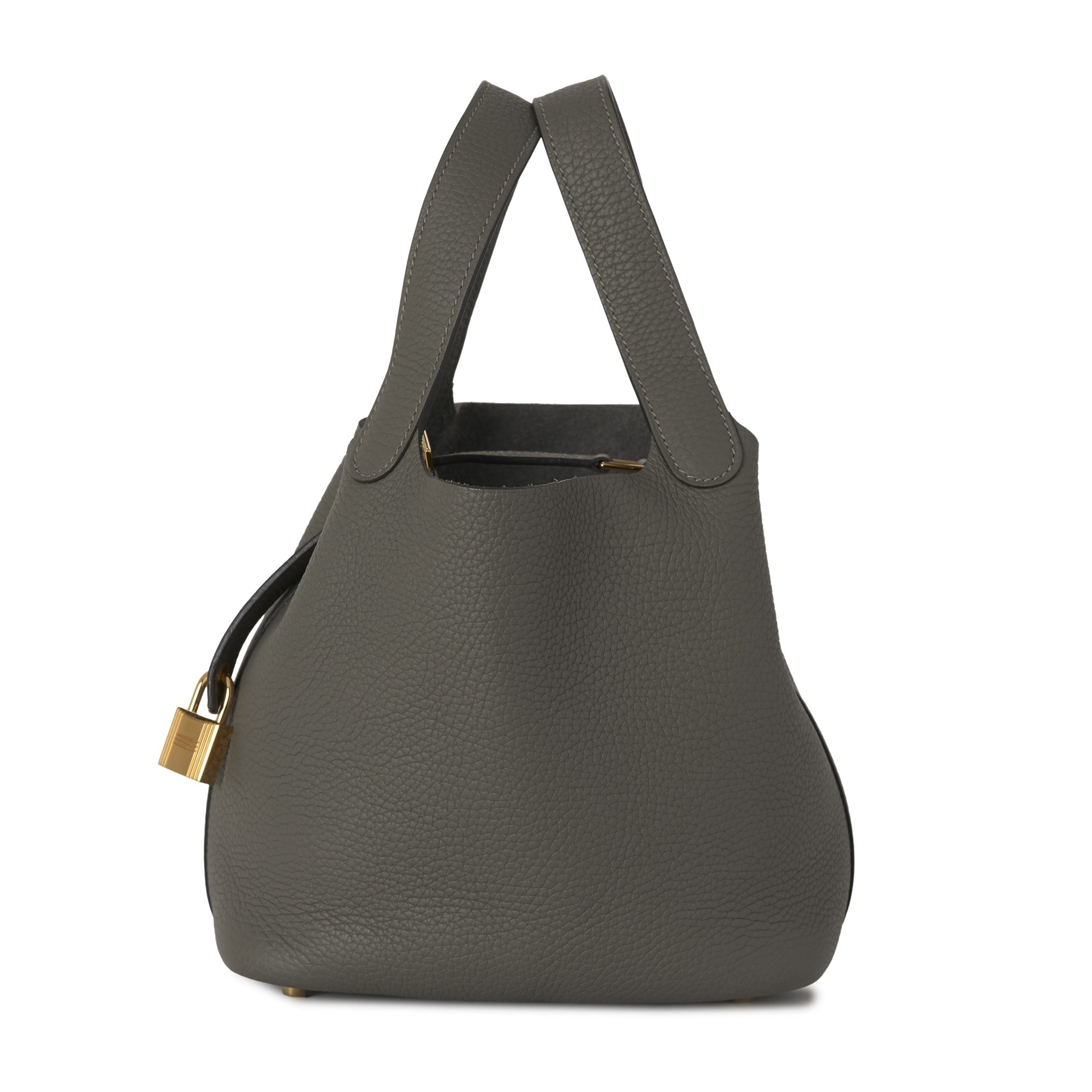Hermes, a 2022, Picotin 18 bucket bag, crafted from grey Clemence leather, with gold-plated hardware, dual flat leather handles, an open top with lockable strap fastening, padlock and keys, and four protective base studs, measuring 14 by 18 by 18cm, with maker's dust bag