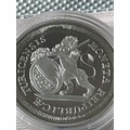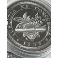 Concordia & Justicia Commemorative Medal – 1773 Design – Proof Style (Capsule & Cert) Modern commemorative medal featuring a historic-style “Concordia et Justicia” design with lion, shield and classical motifs dated 1773. High-detail proof-style finish, housed in capsule with numbered certificate.