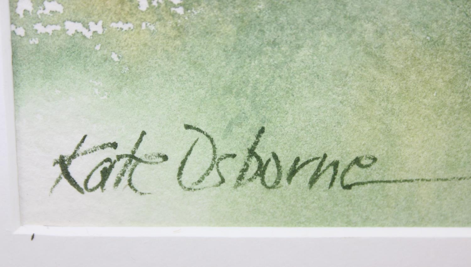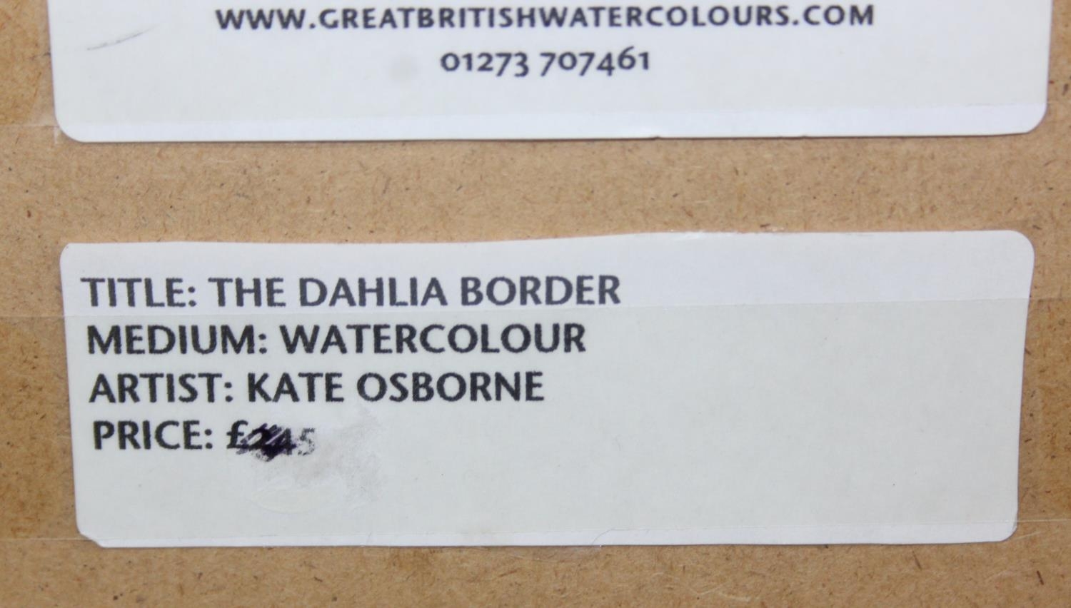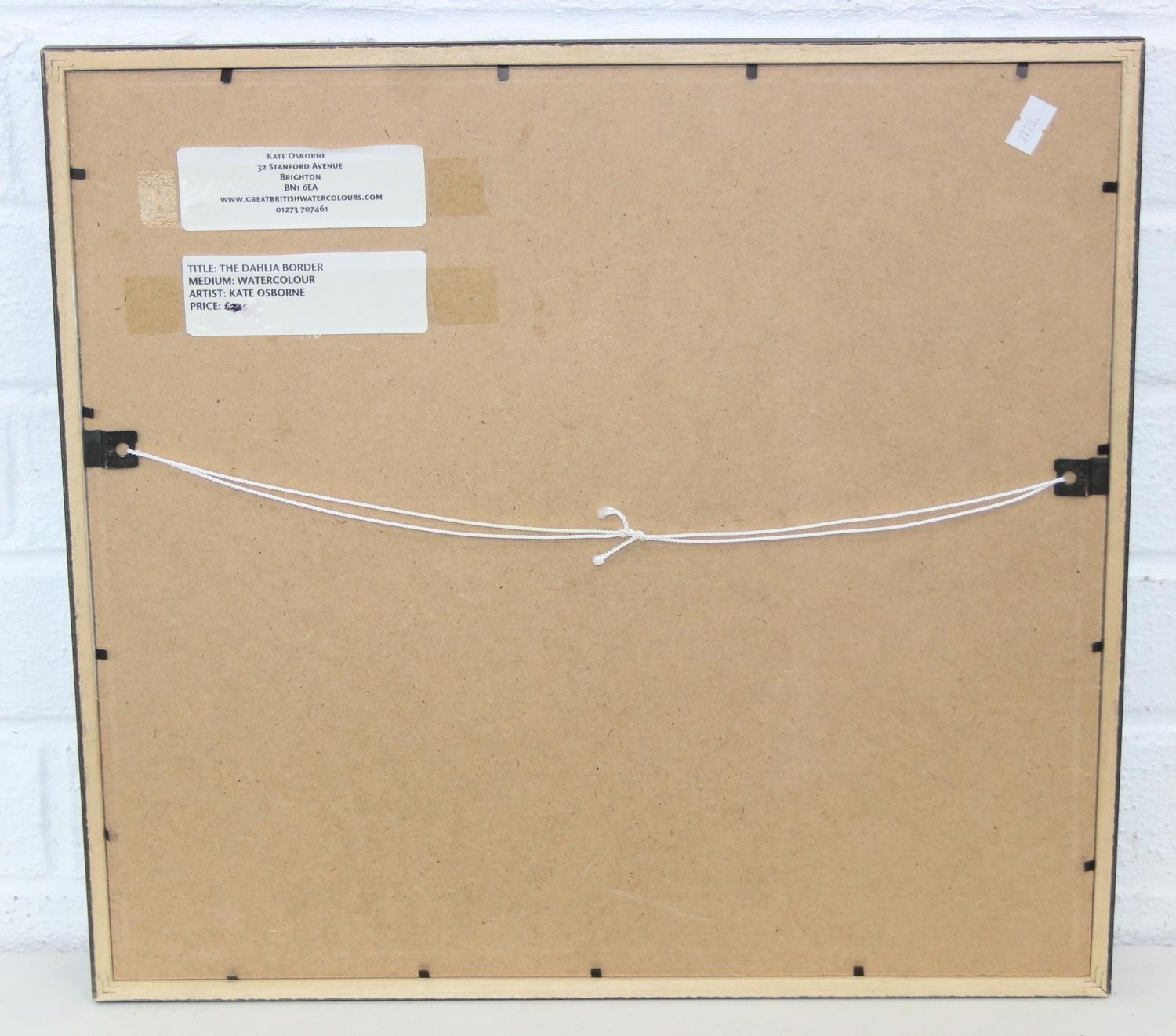 Kate Osborne (British, Contemporary), "The Dahlia Border" watercolour of chickens eating flowers, in simple black frame, original price of £245, 44cm x 41cm